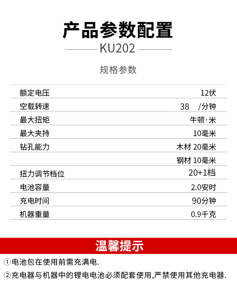 • KU202+KU202 전기 드릴, 배터리 3개 및 충전기 1개