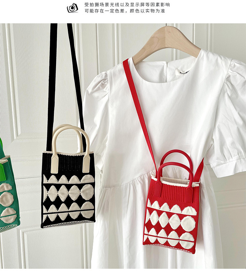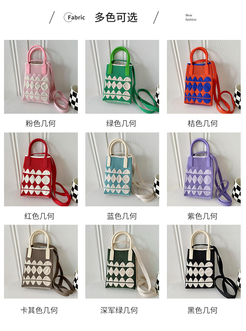 봄 나들이용 한국어 버전, 귀여운 미니 기하학적 대비 색상 휴대폰 가방, 학생용 다용도 핸드백, 크로스백, 재고 있음