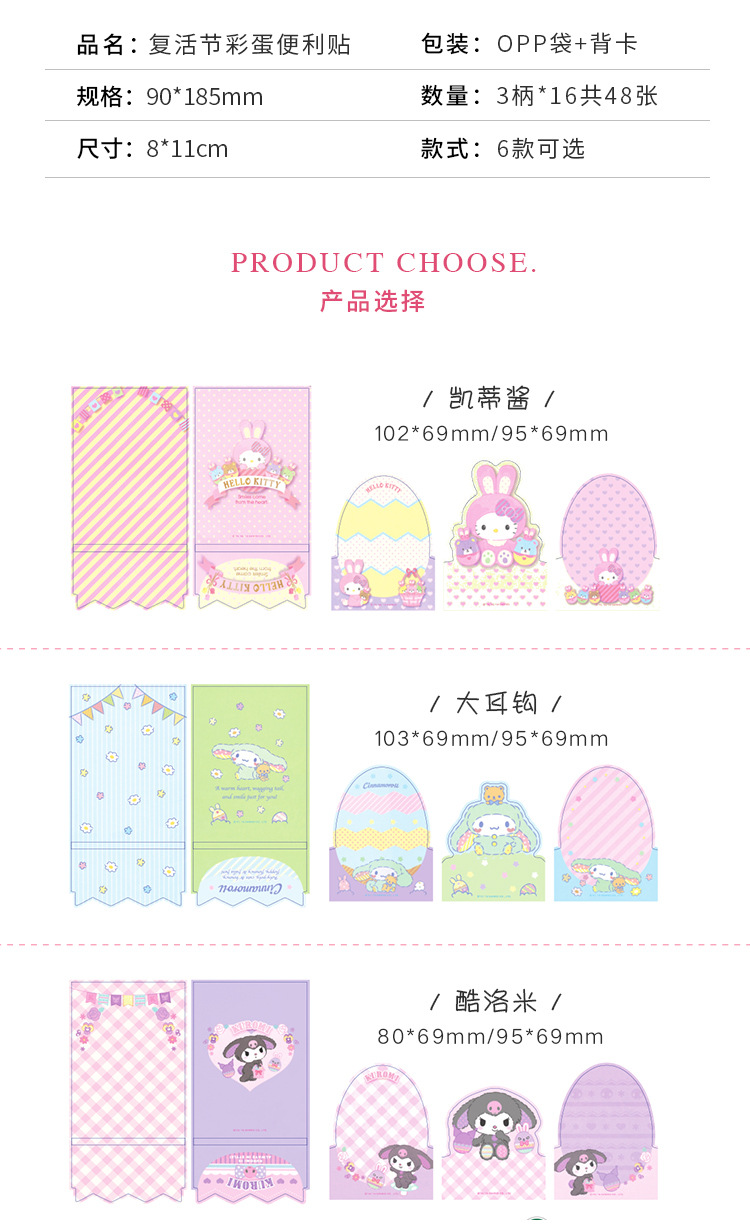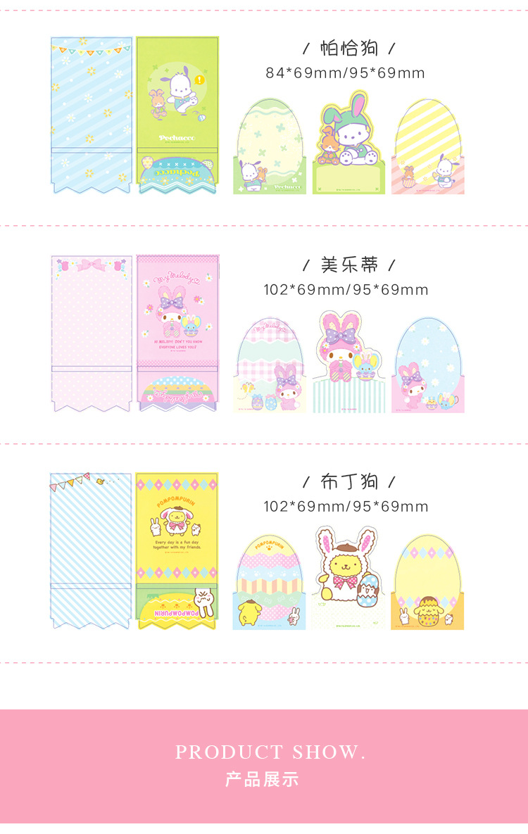 산리오 쿨로 미 부활절 달걀 스티커 메모 메모 종이 일본과 한국 만화스토어 가기