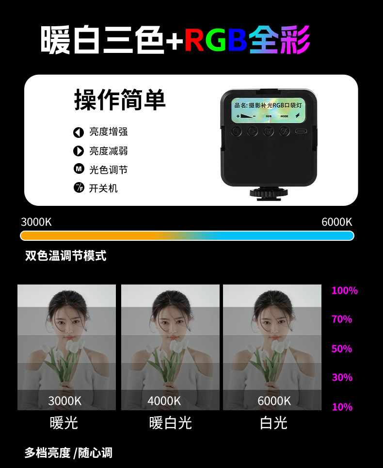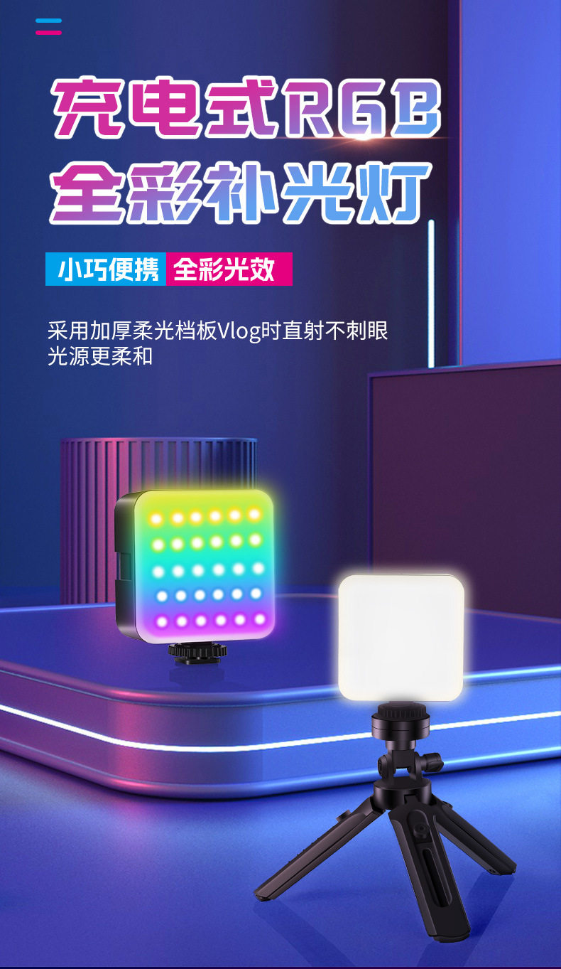 포켓 라이트 스퀘어 필 라이트 미니 휴대용 필 라이트 셀카 사진 rgb 실내 조명 led 분위기 핸드 헬드스토어 가기