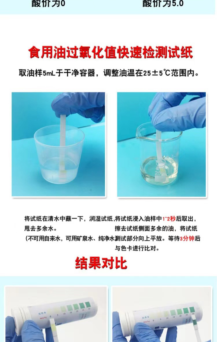 식용 오일 과산화수소 가치 빠른 테스트 종이 카드 테스트 열등한 거터 오일 결정 가정용 기기 시약