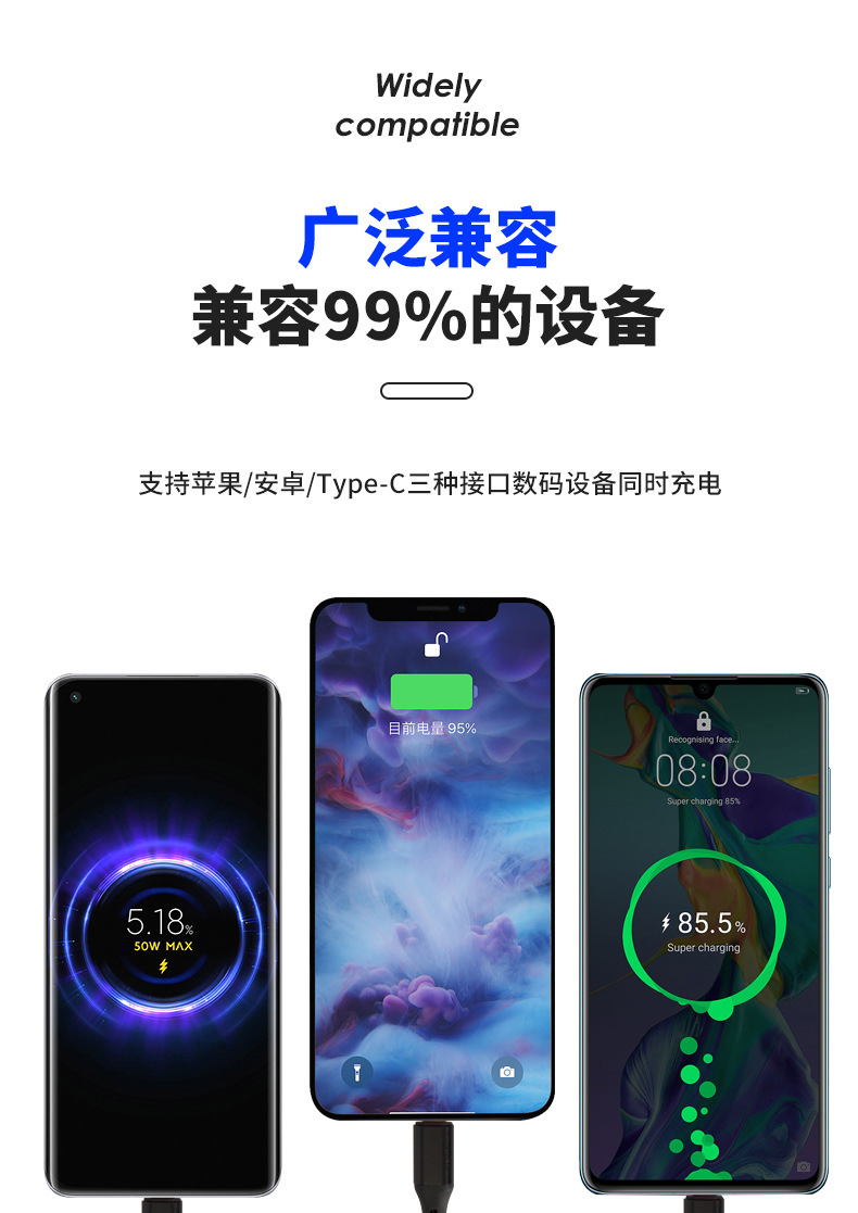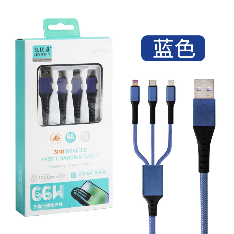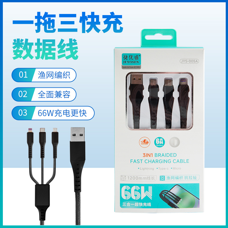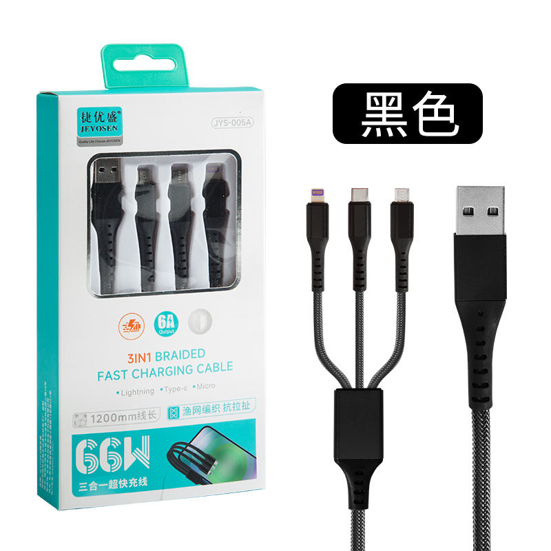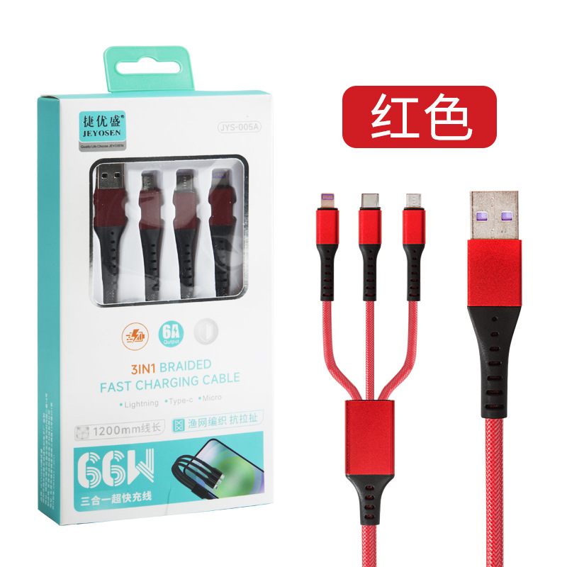 Huawei 6A 데이터 케이블 1 대 3 데이터 케이블 66W 초고속 충전 라인 3 대 1 휴대 전화 충전 라인에 적합