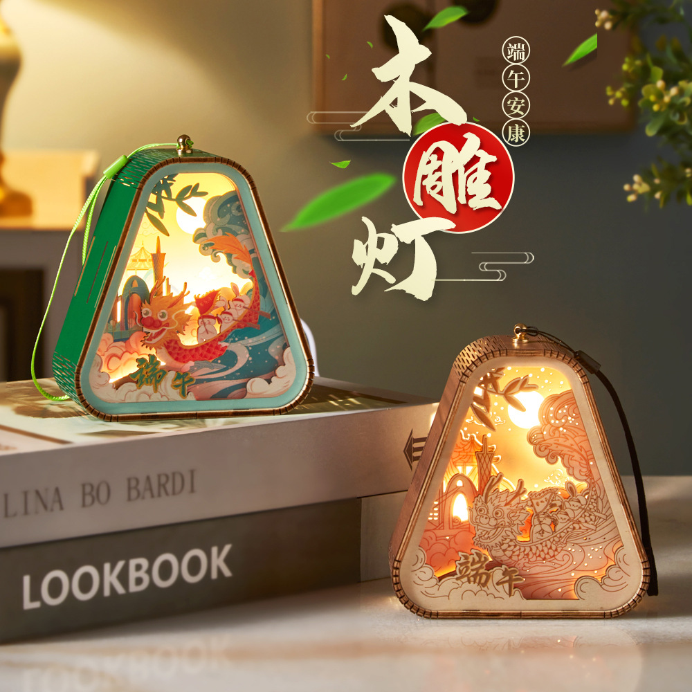 드래곤 보트 축제 선물 나무 조각 램프 3d 야간 분위기 램프 장식 창조적 인 중추절 작은 선물 기업 문화 및 창조적 인 장식품스토어 가기