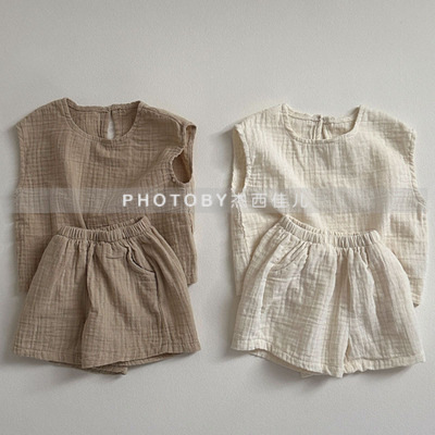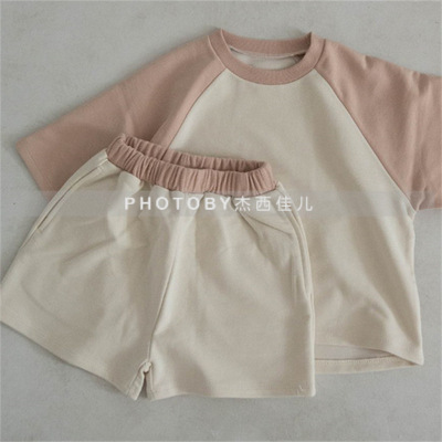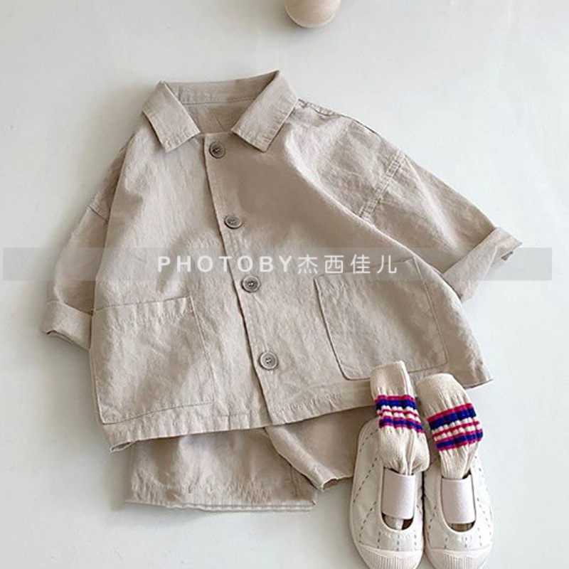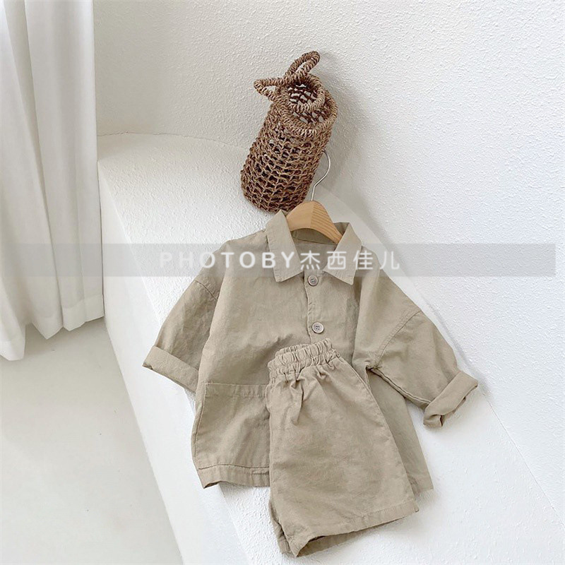 에 한국 스타일 소년과 소녀 여름 새로운 세트 유행 잘 생긴 옷깃 셔츠 반바지 어린이 캐주얼 투피스 세트스토어 가기