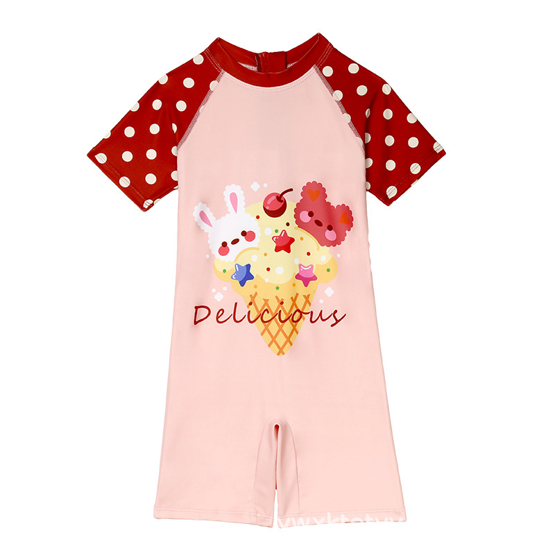 어린이 수영복 소녀 2023 뜨거운 봄 새로운 짧은 소매 짧은 바지 치마 도매 자외선 차단제 원피스 캐주얼 홀리데이 웨어