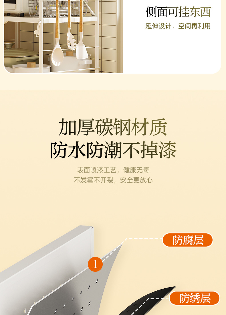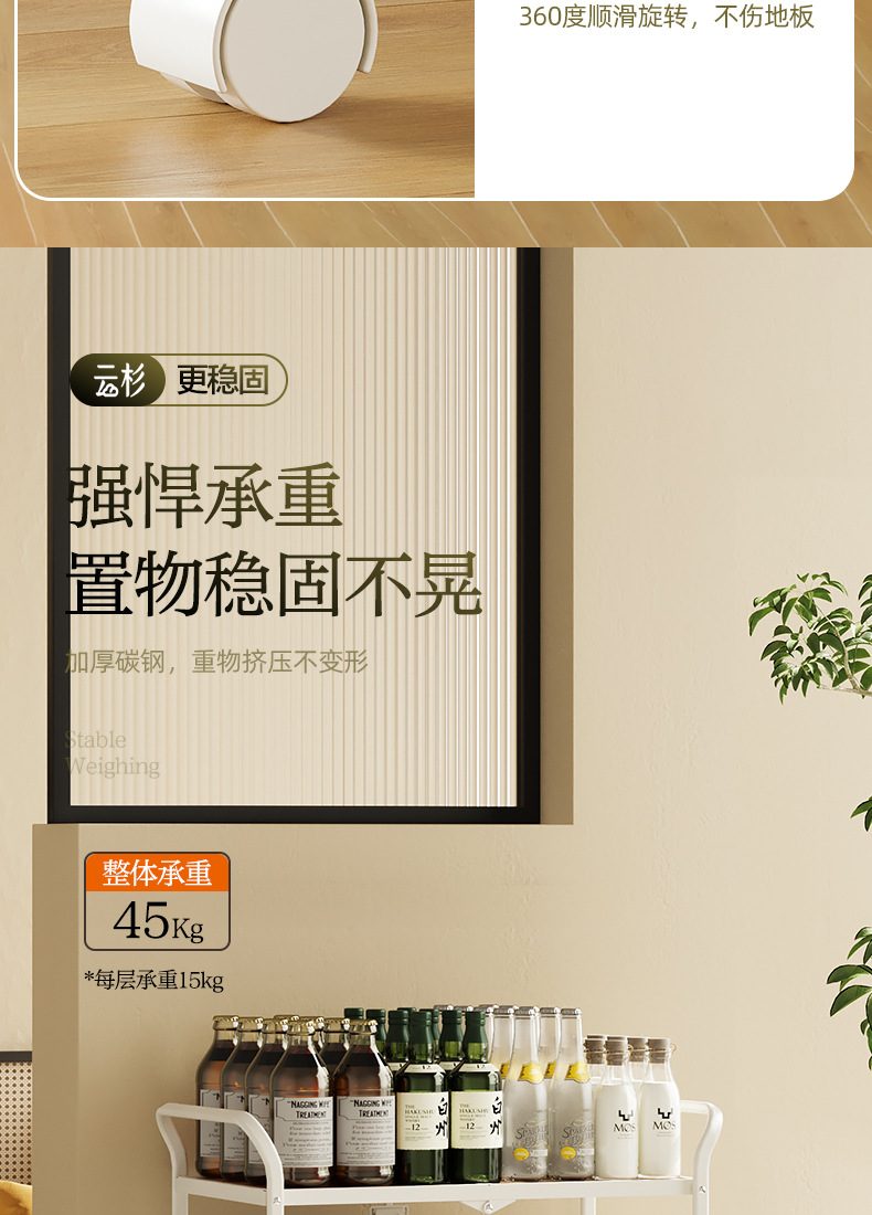 Gemeiju 트롤리 스토리지 랙 주방 바닥 모바일 냄비 랙 스토리지 랙 다층 스낵 스토리지 랙