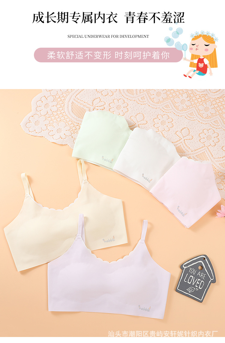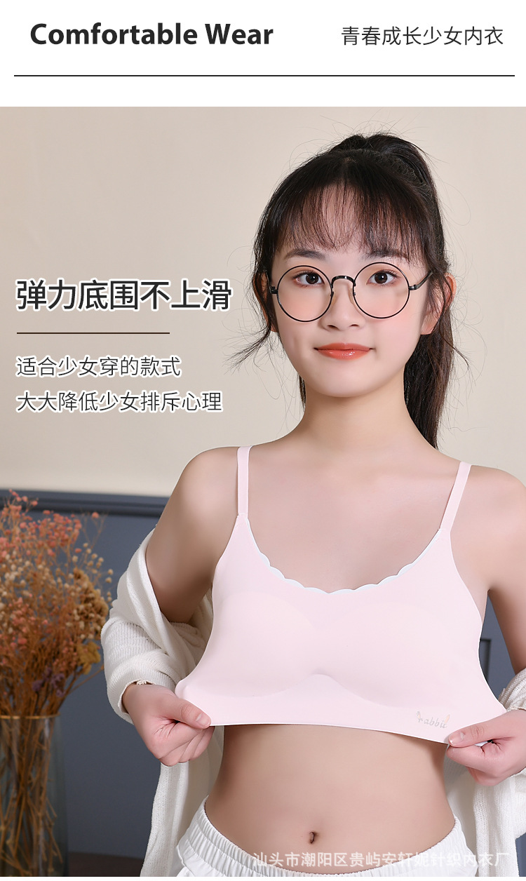 여아 속옷 여름 얇은 얼음 실크 테이프 조끼 발달 여아 중학교 학생 원활한 브래지어