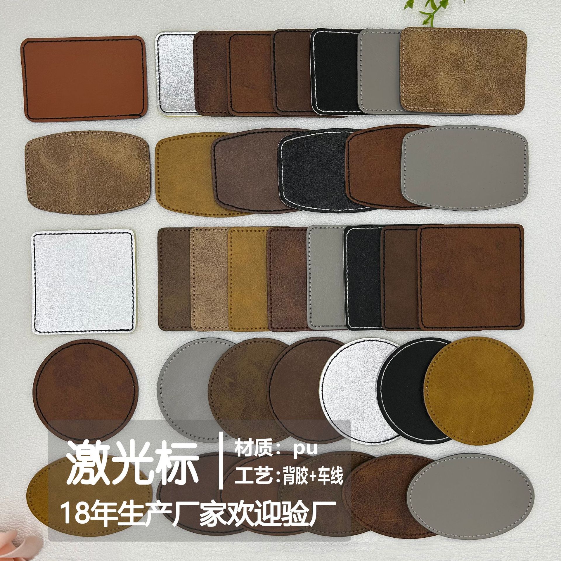 本厂主做皮标(跟皮料有关的皮条、皮袢、皮套、杯垫等)、pvc滴塑标/合模胶章、布标、TPU高周波电压标、刻字膜烫标、激光皮标、硅胶烫标、冲型皮标等,可以把不同材质复合,如滴塑复合到皮标上、tpu复合到织带上、刻字膜转压到皮标上、硅胶标转烫到布标上等等。所涉及到的工艺繁多,如压印、彩印、uv印皮标、金属电镀皮牌,烫金(热烫、冷烫)、皮标、滴塑标带背胶/魔术贴、皮标打扣、车线、油边、锁边、刺绣等。