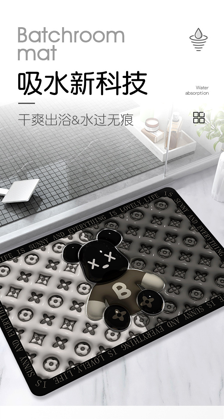 욕실 바닥 매트, 욕실 문, 크로스보더 미끄럼 방지 발 매트, 화장실 입구 규조토 진흙 흡수 매트, 속건성 만화 홈스토어 가기