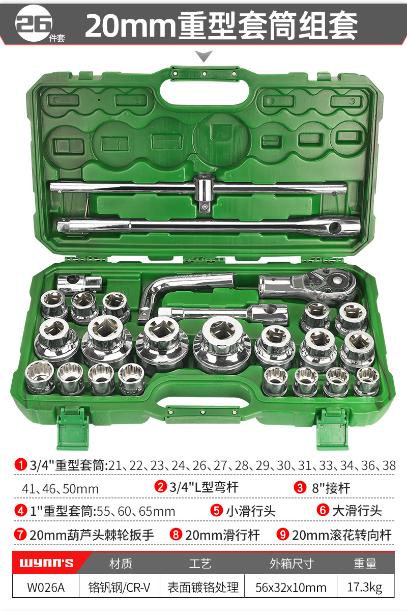 • 26 피스 세트 [3/4 인치 메트릭 중장비] W026A