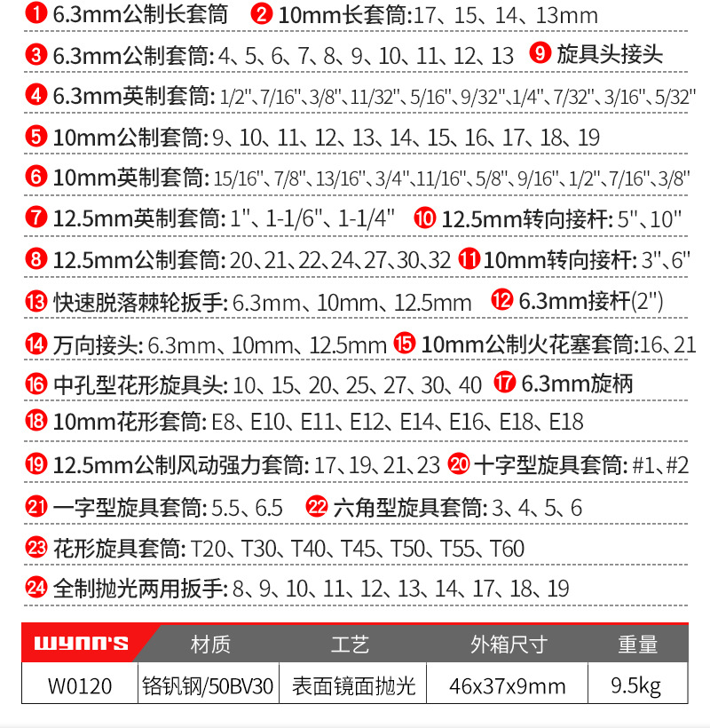 • 26 피스 세트 [중페이 3/8 인치] W026