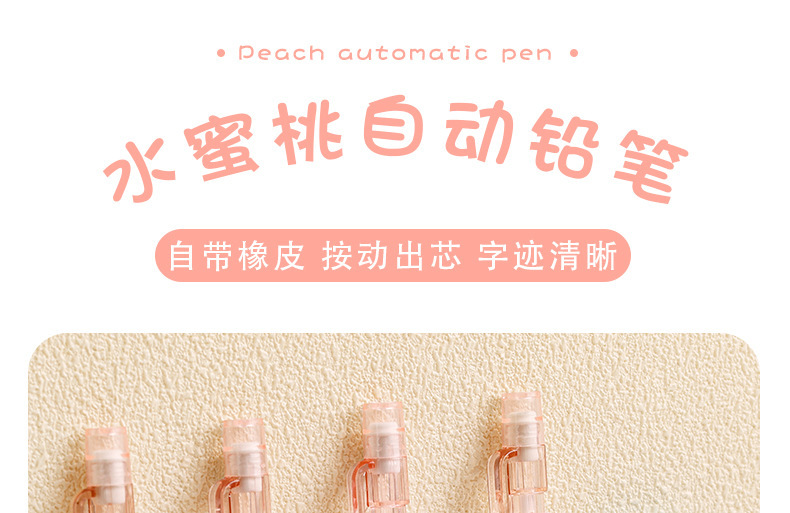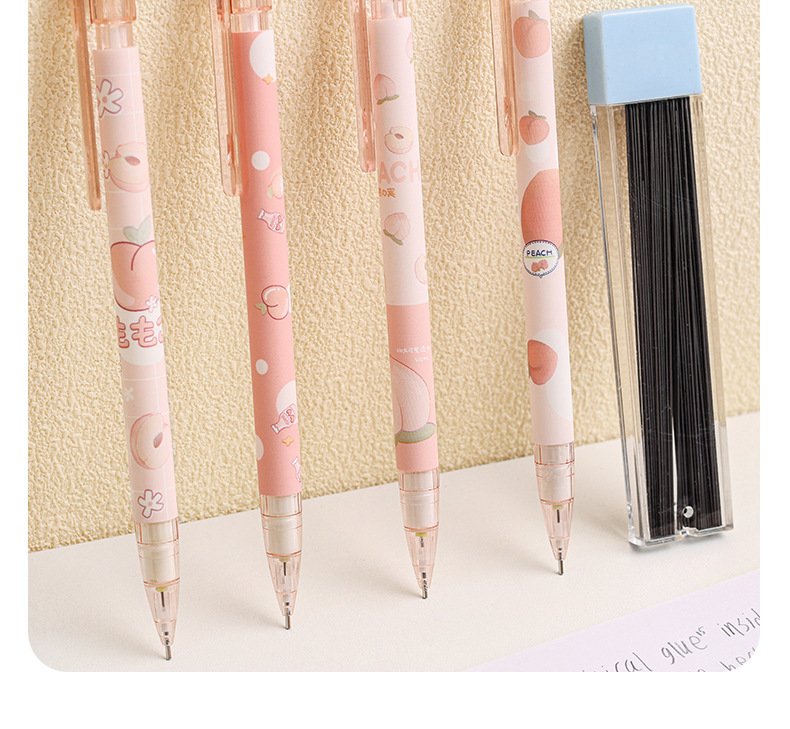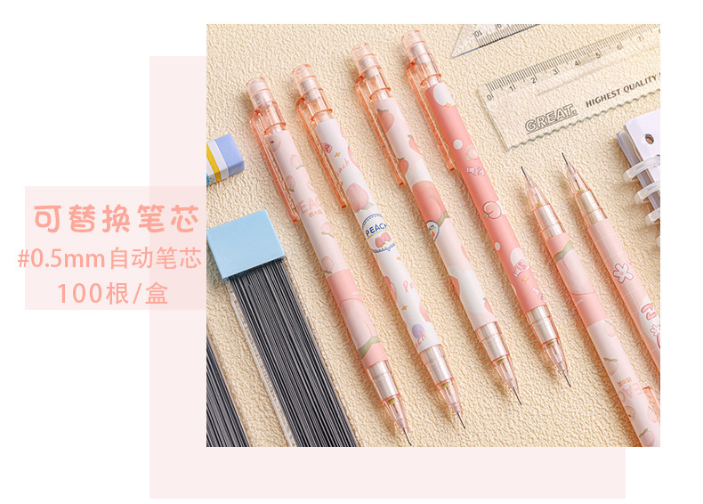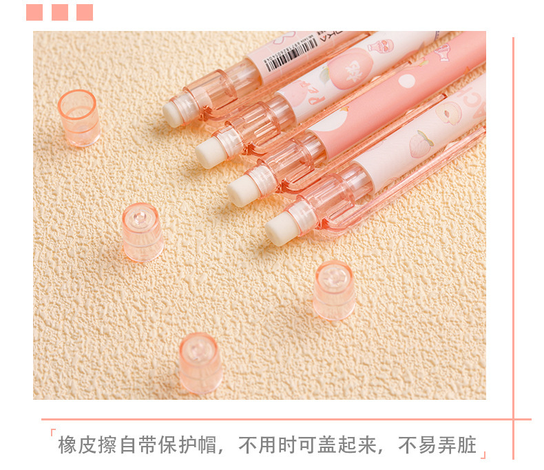 소녀의 심장 복숭아 제한 자동 연필 초등 학생 완전 자동 샤프닝없는 연필 0.5mm 자체 포함 지우개