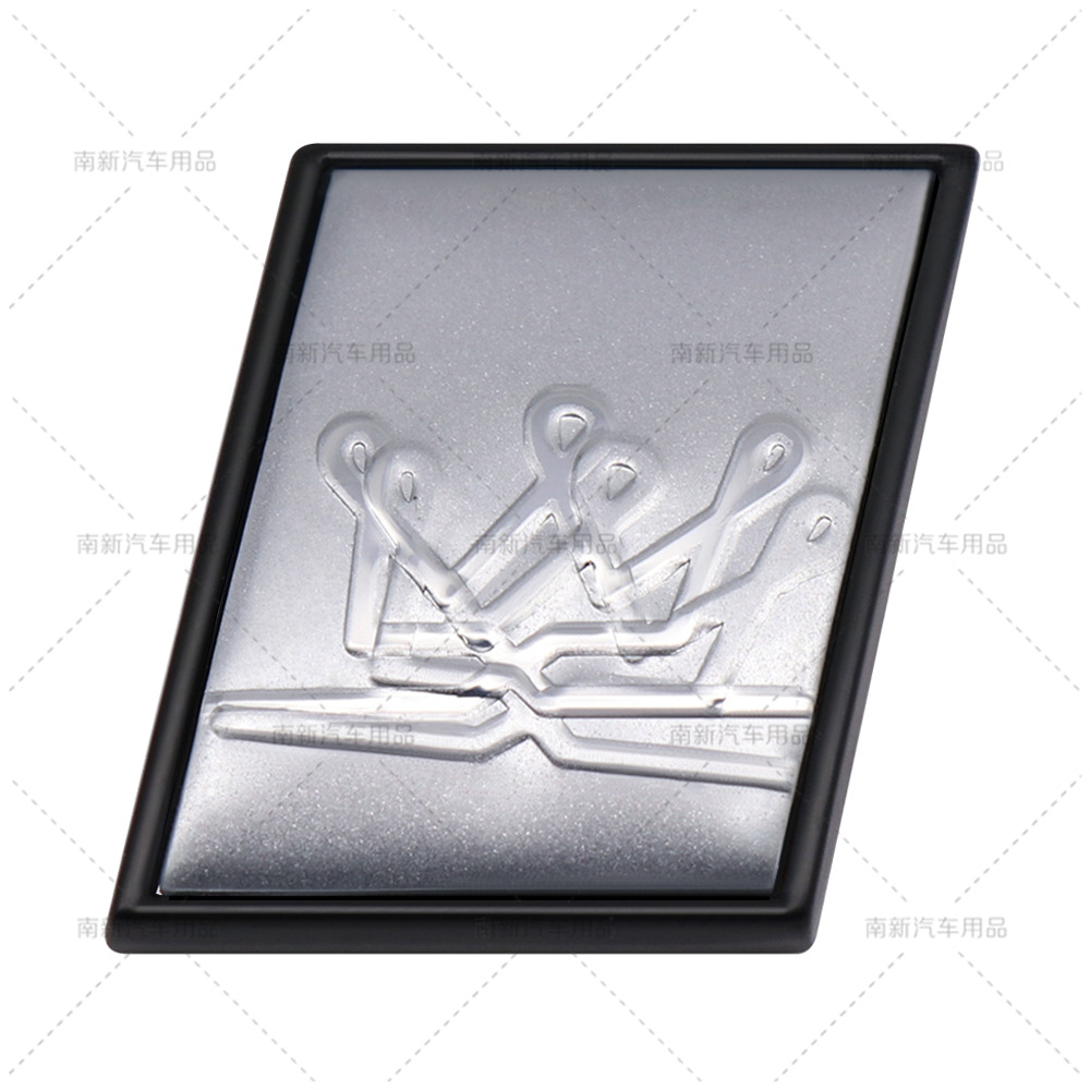 2.将车标背胶的保护膜小心揭下来;对准要粘贴的部位贴上,顺着车标从上而下推,并再次按牢;