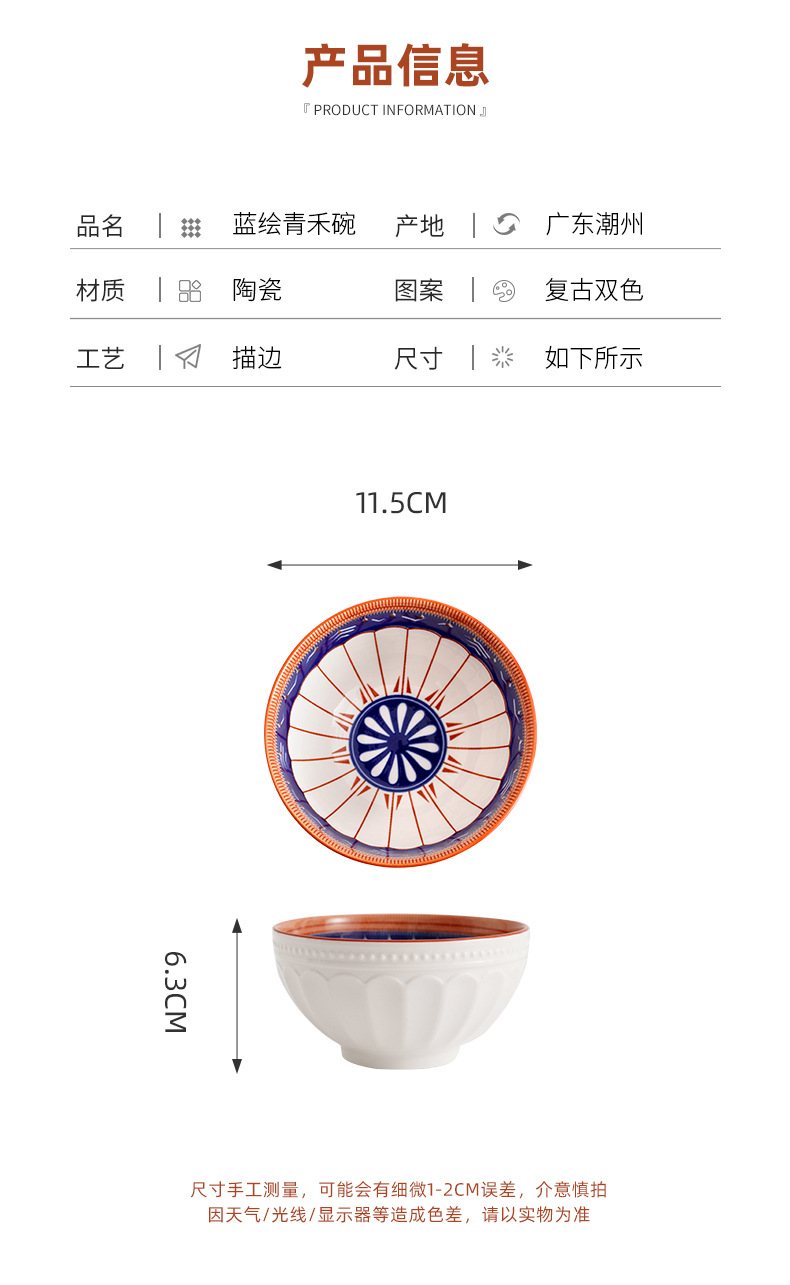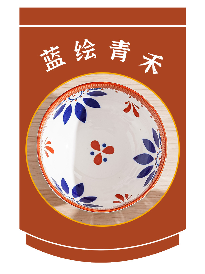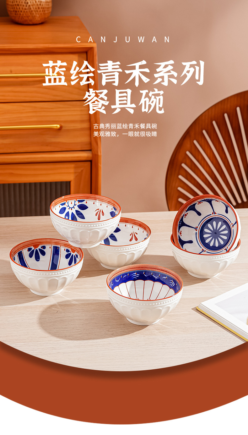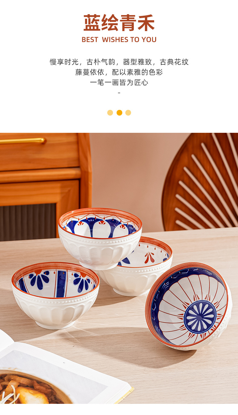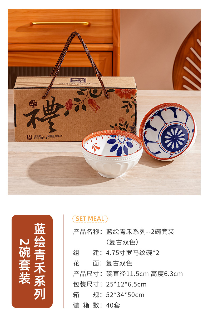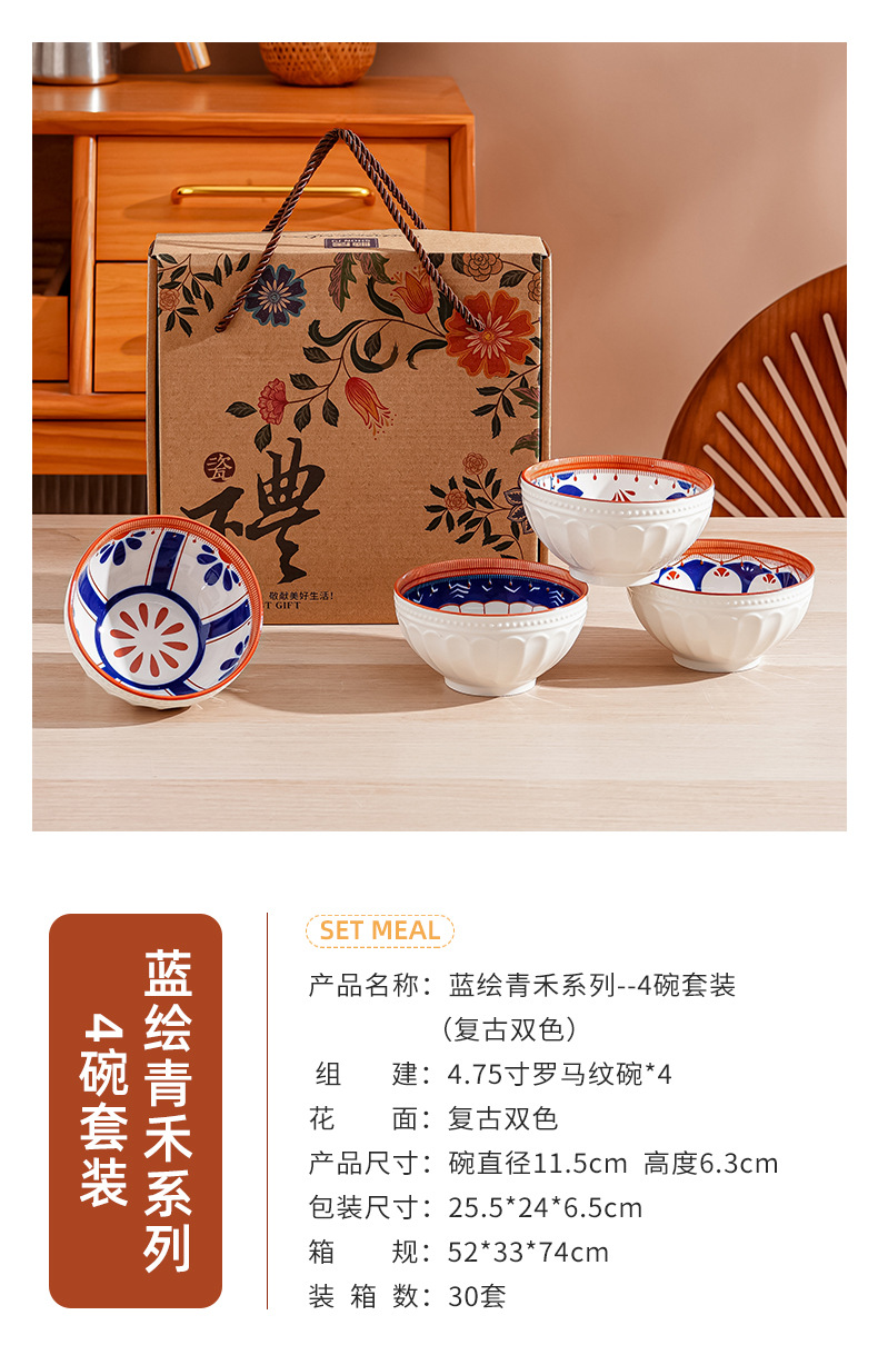 새로운 클래식 세라믹 그릇 중국식 가정 선물 제공 블루 페인트 그린 수확 세라믹 그릇 고온 저항 우아한 식기 선물 상자스토어 가기