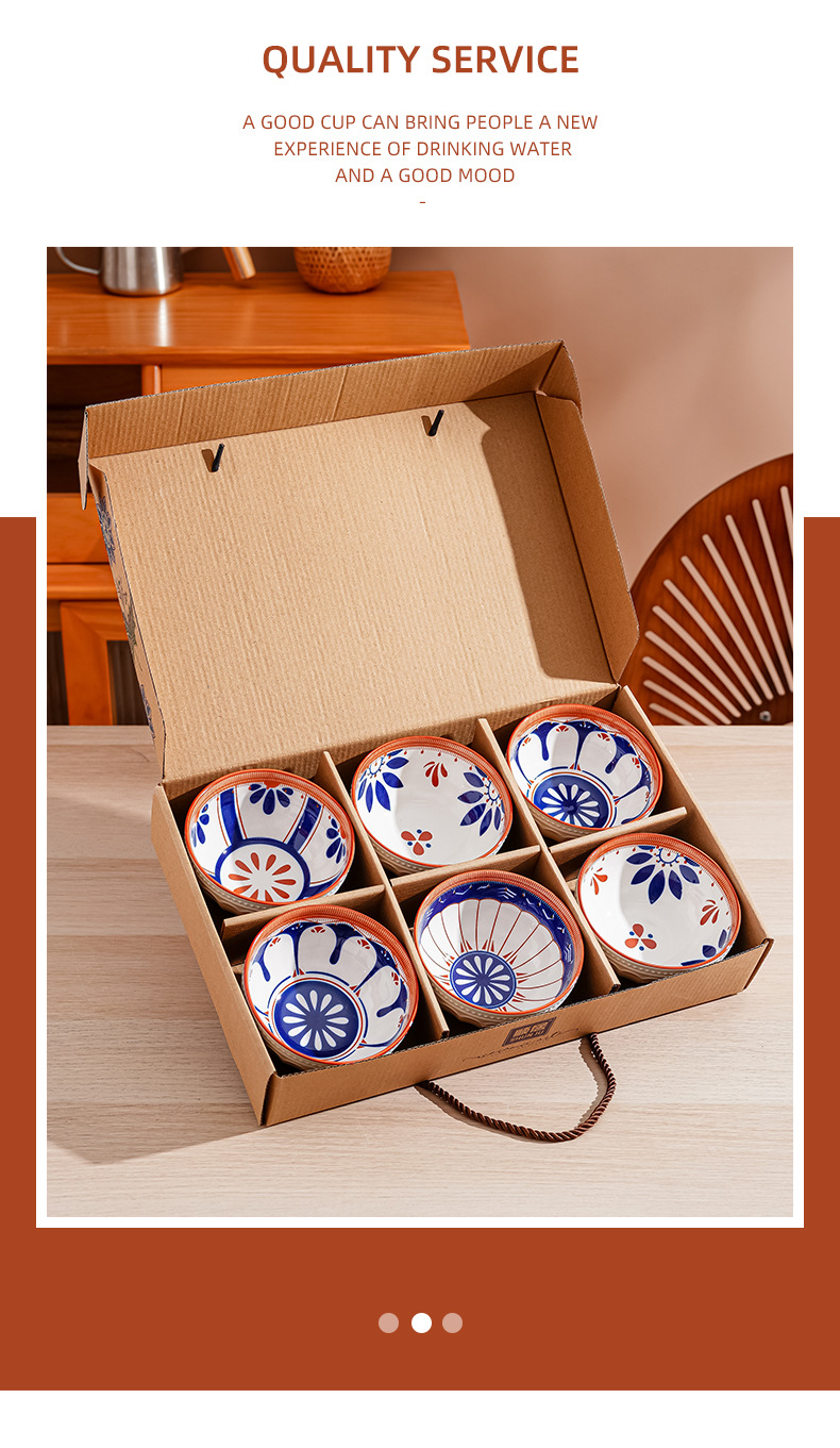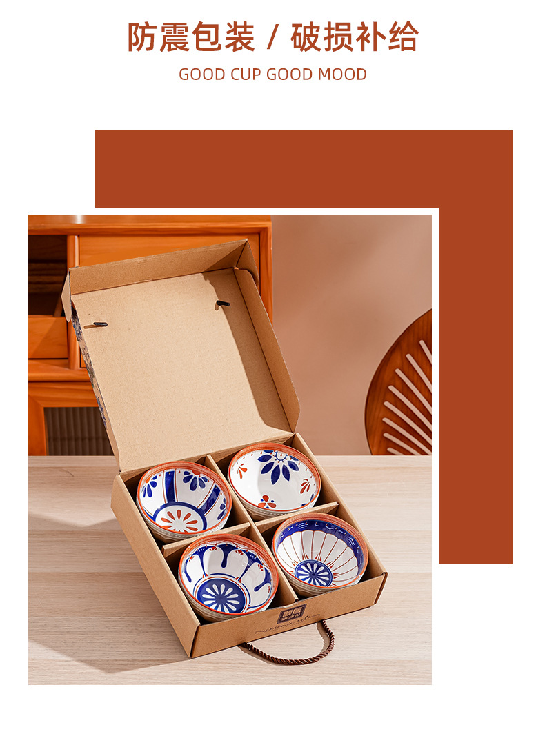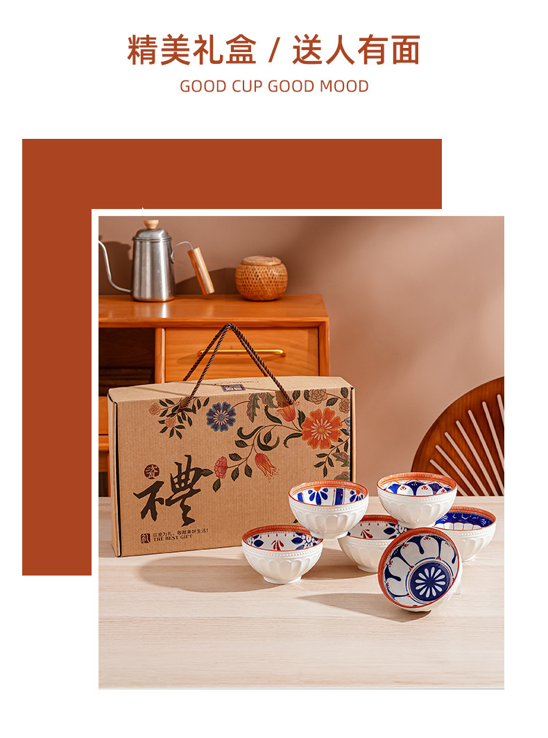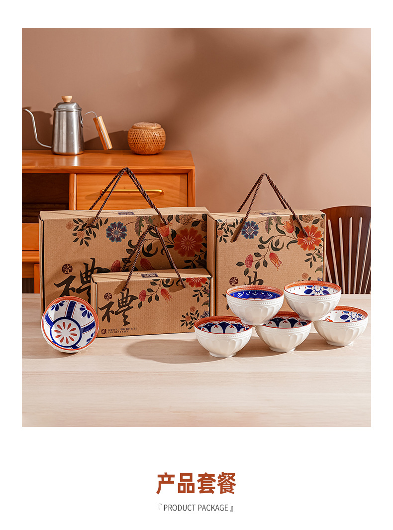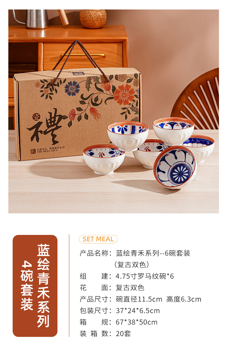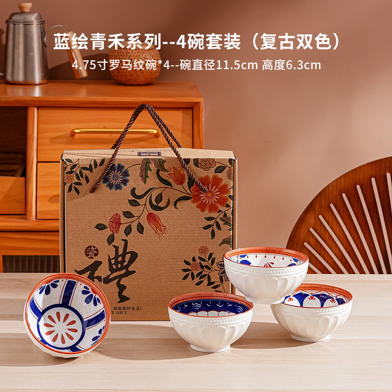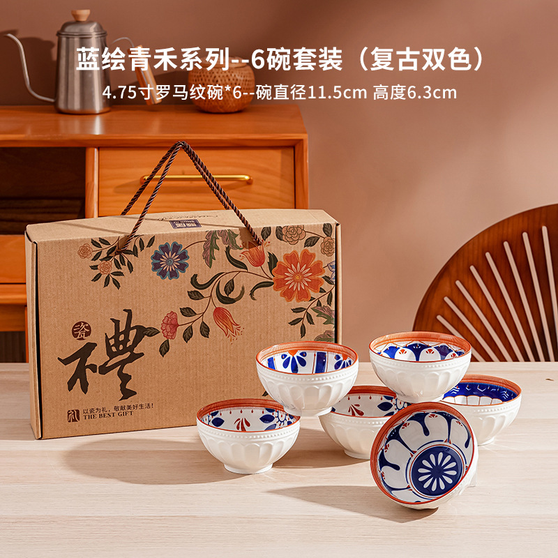 새로운 클래식 세라믹 그릇 중국식 가정 선물 제공 블루 페인트 그린 수확 세라믹 그릇 고온 저항 우아한 식기 선물 상자
