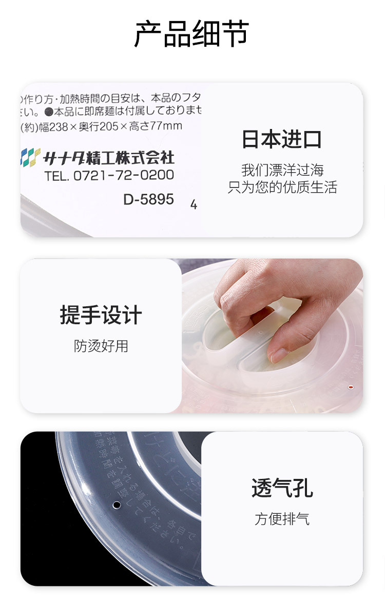 SANADA 일본 전자 레인지 가열 그릇 학생 화이트 칼라 식품 가열 상자 뚜껑 포함 휴대용 난방 밥 찜기