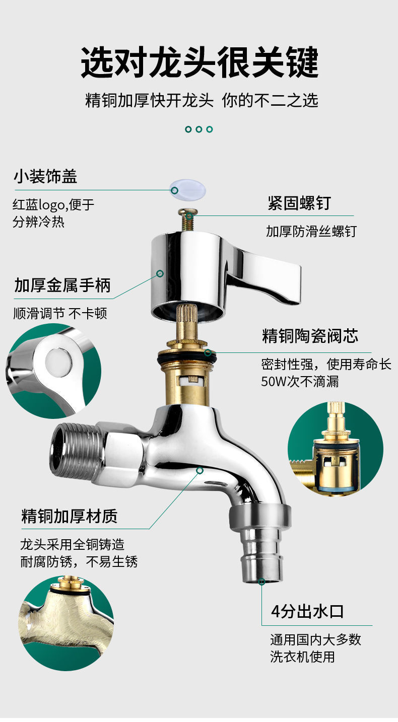 세련된 구리 세탁기 수도꼭지 4 점 특수 가정용 연장 걸레 풀 싱글 콜드 퀵 오픈 4 점 방폭