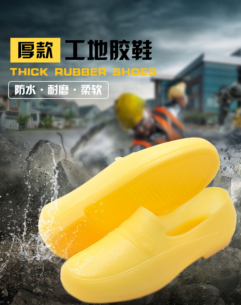 도매 노란색 건설 현장용 고무신 남성용 두꺼운 로우컷 안전화 방수 신발 사계절용 미끄럼 방지 내마모성
