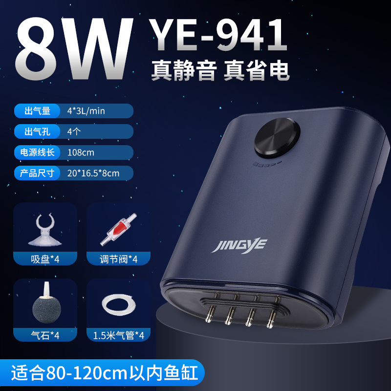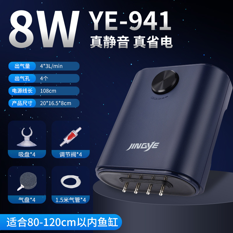 Jingye 산소 펌프 금붕어 산소 펌프 수조 4 헤드 대용량 물고기 산소 공급기 작은 물고기 연못 가정용 워터 펌프스토어 가기