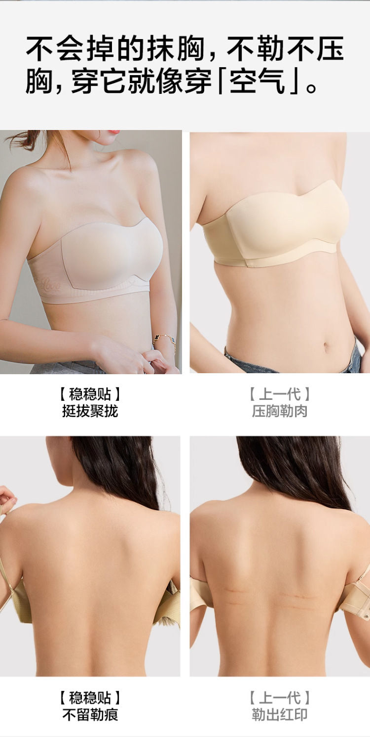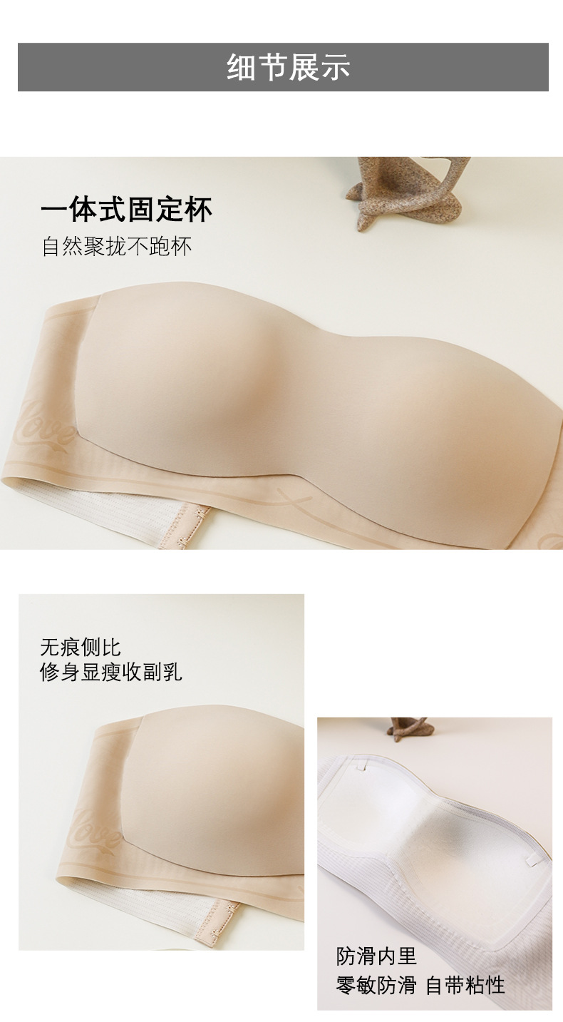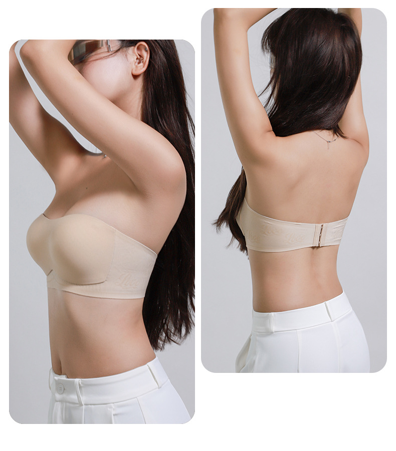 엄선된 여성용 끈 없는 미끄럼 방지 브라, 큰 가슴을 작아 보이게 하는 얇은 스타일, 와이어 없음, 보이지 않는 무봉제 푸쉬업 브라