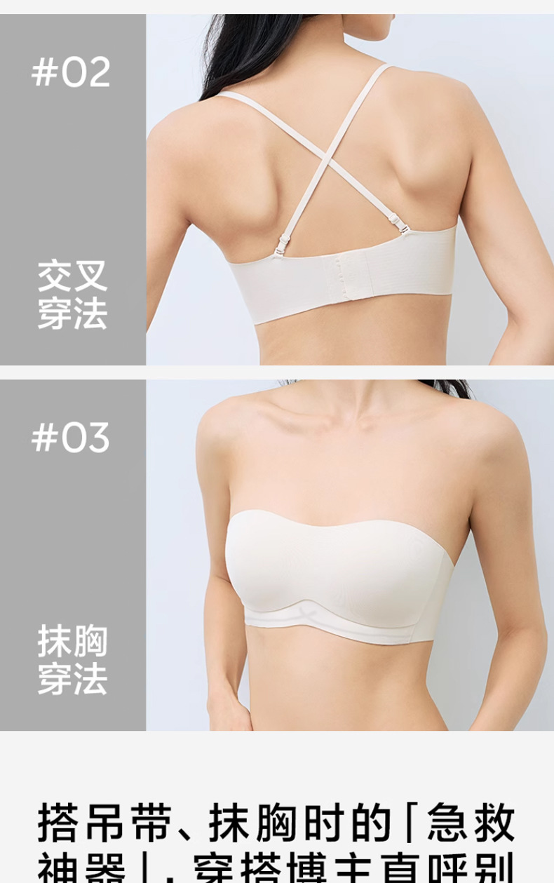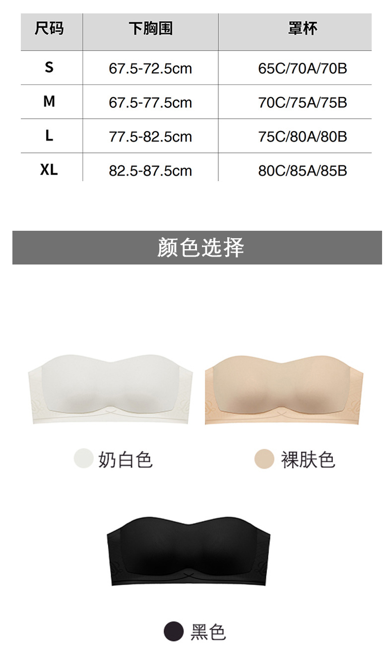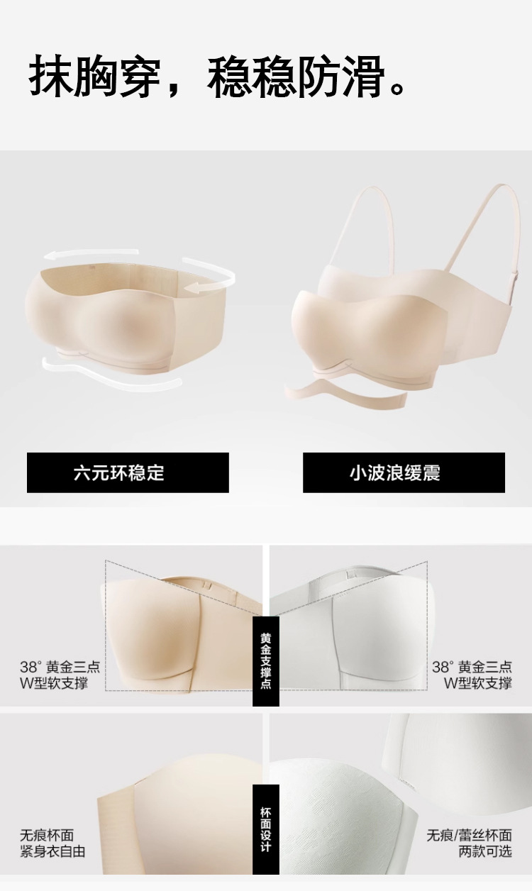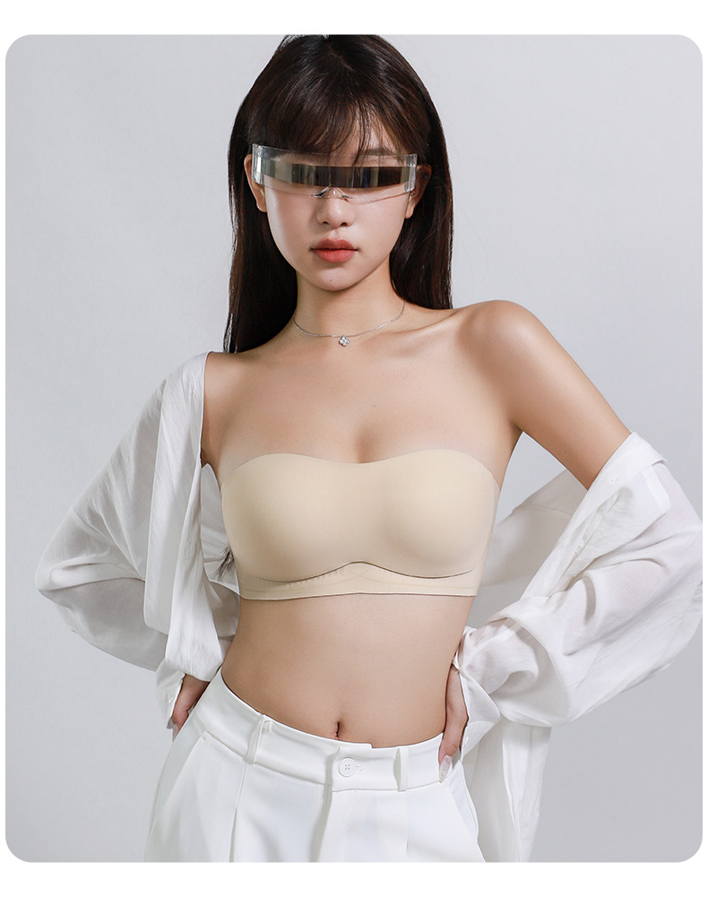 엄선된 여성용 끈 없는 미끄럼 방지 브라, 큰 가슴을 작아 보이게 하는 얇은 스타일, 와이어 없음, 보이지 않는 무봉제 푸쉬업 브라