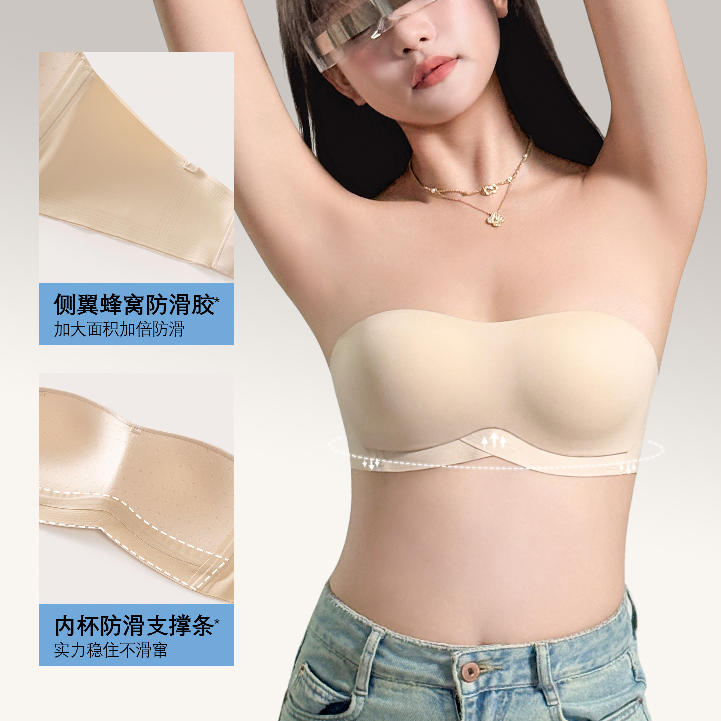 정품 스트랩리스 미끄럼 방지 여성용 브라, 큰 가슴을 작아 보이게 하는 얇은 스타일, 와이어 없음, 보이지 않는 무봉제 푸쉬업 브라스토어 가기