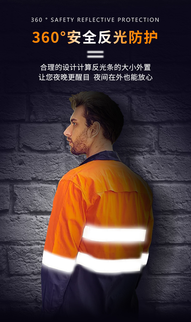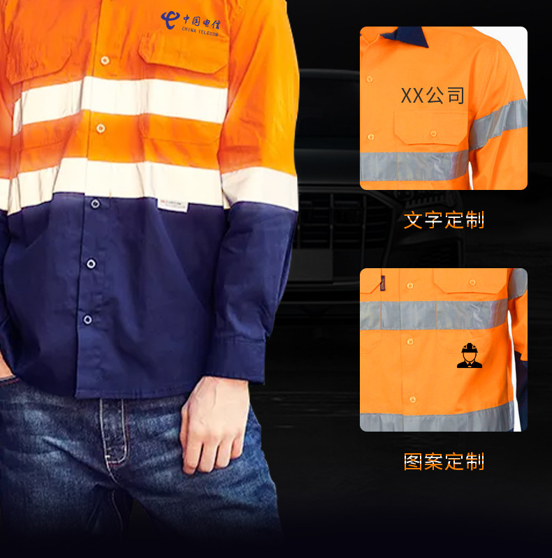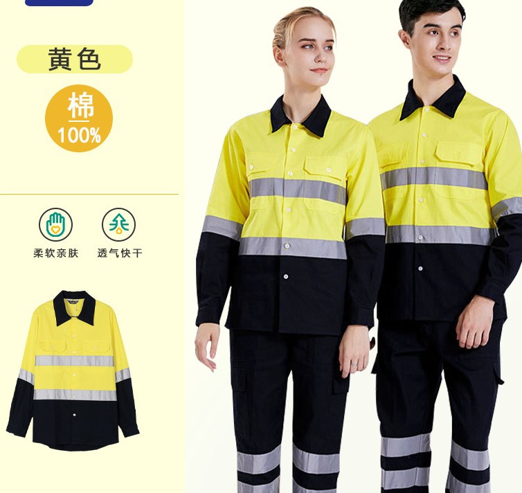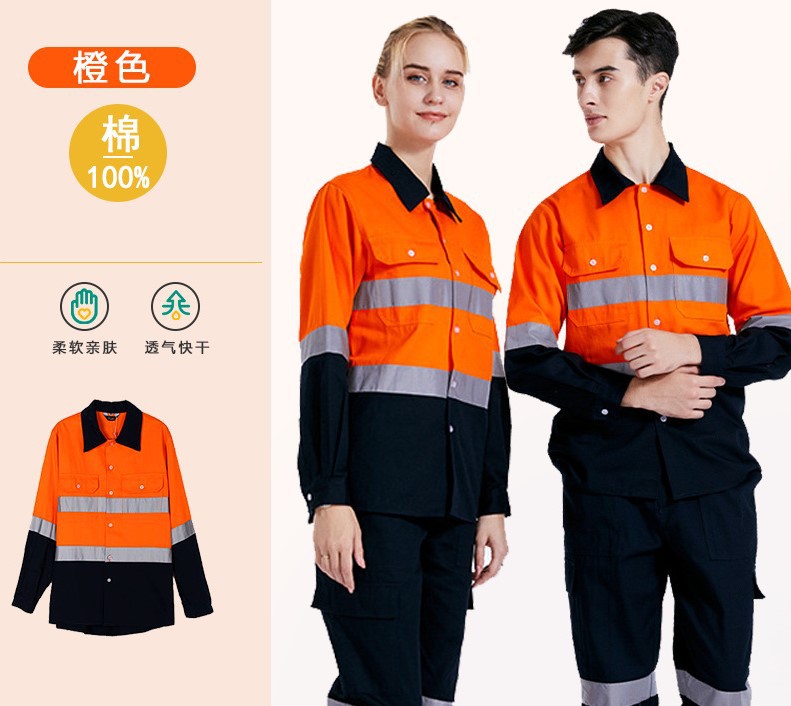대외 무역 면 긴 소매 반사 셔츠 작업 옷 세트 건설 현장 유전 유니폼 노동 보호 의류 공구 편안스토어 가기
