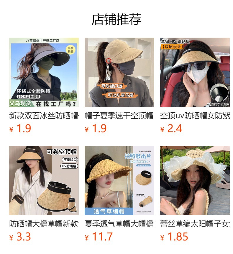 태양 보호 모자, 챙이 큰 밀짚 모자, 새로운 스타일의 여성 여름 자외선 방지 태양 모자, 굴릴 수 있는 빈 탑 어부 태양 모자스토어 가기