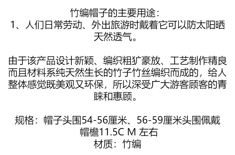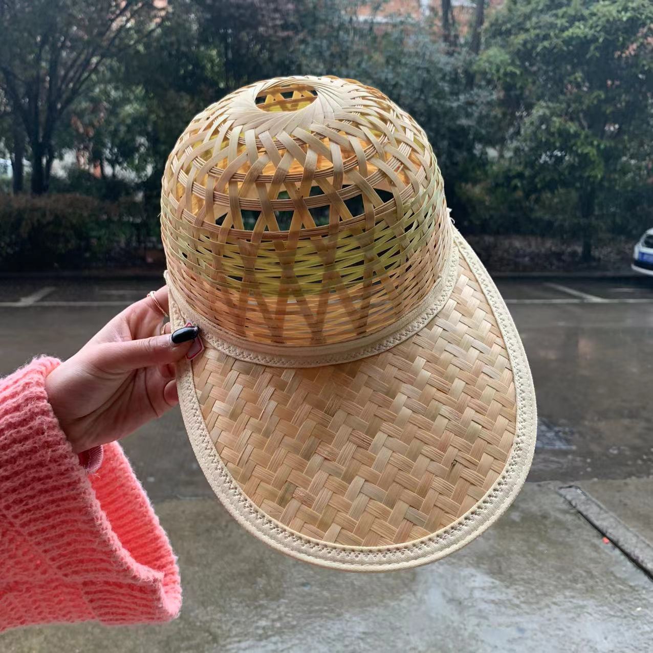 봄과 여름 낚시 피크 대나무 모자 태양 모자 수제 대나무 야구 모자 태양 보호 차양 여행 통기성 등산