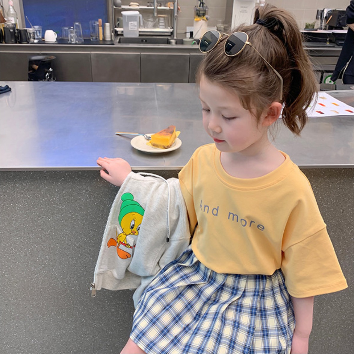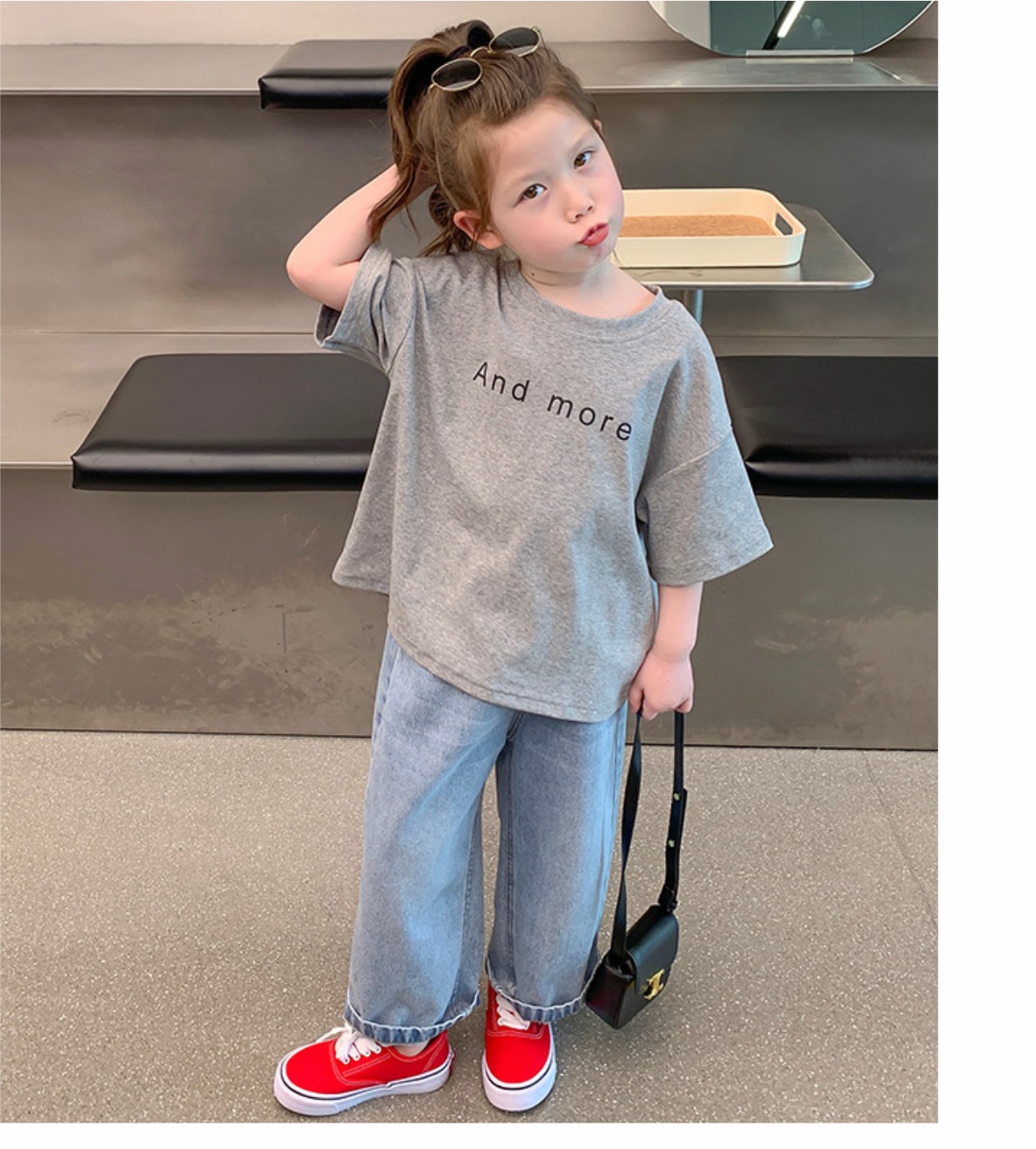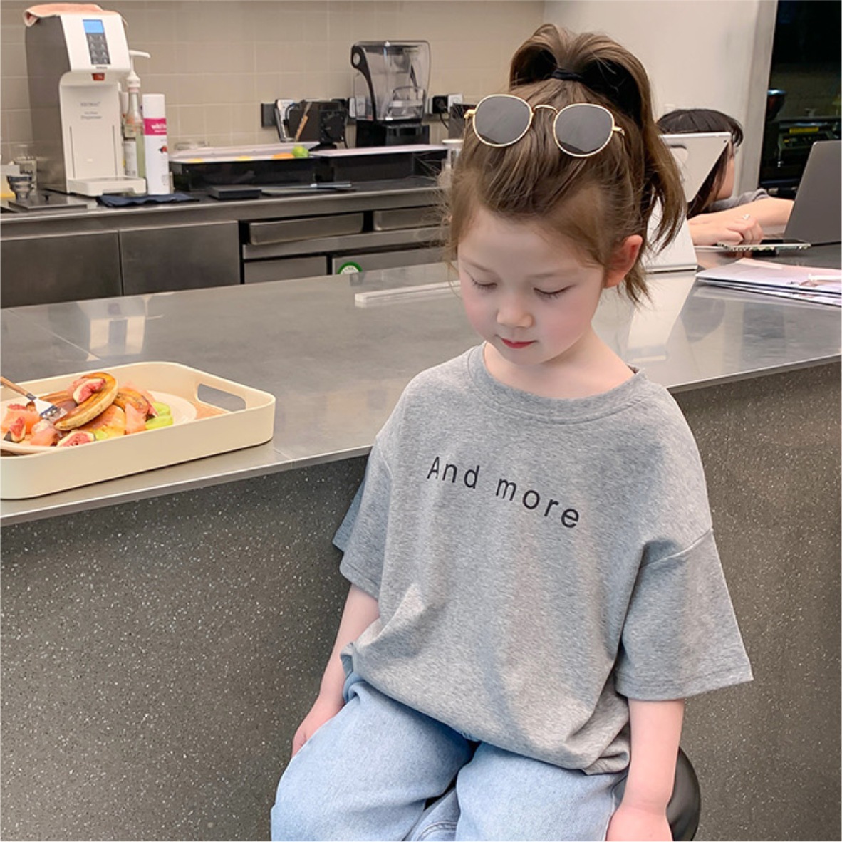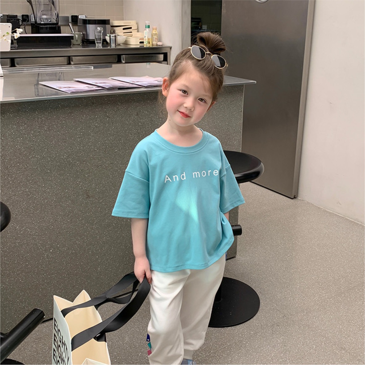 2024년 신상 아동용 여름옷 유아용 반팔 티셔츠 여아용 순면 흰색 레터링 상의 다용도 한국 스타일 6