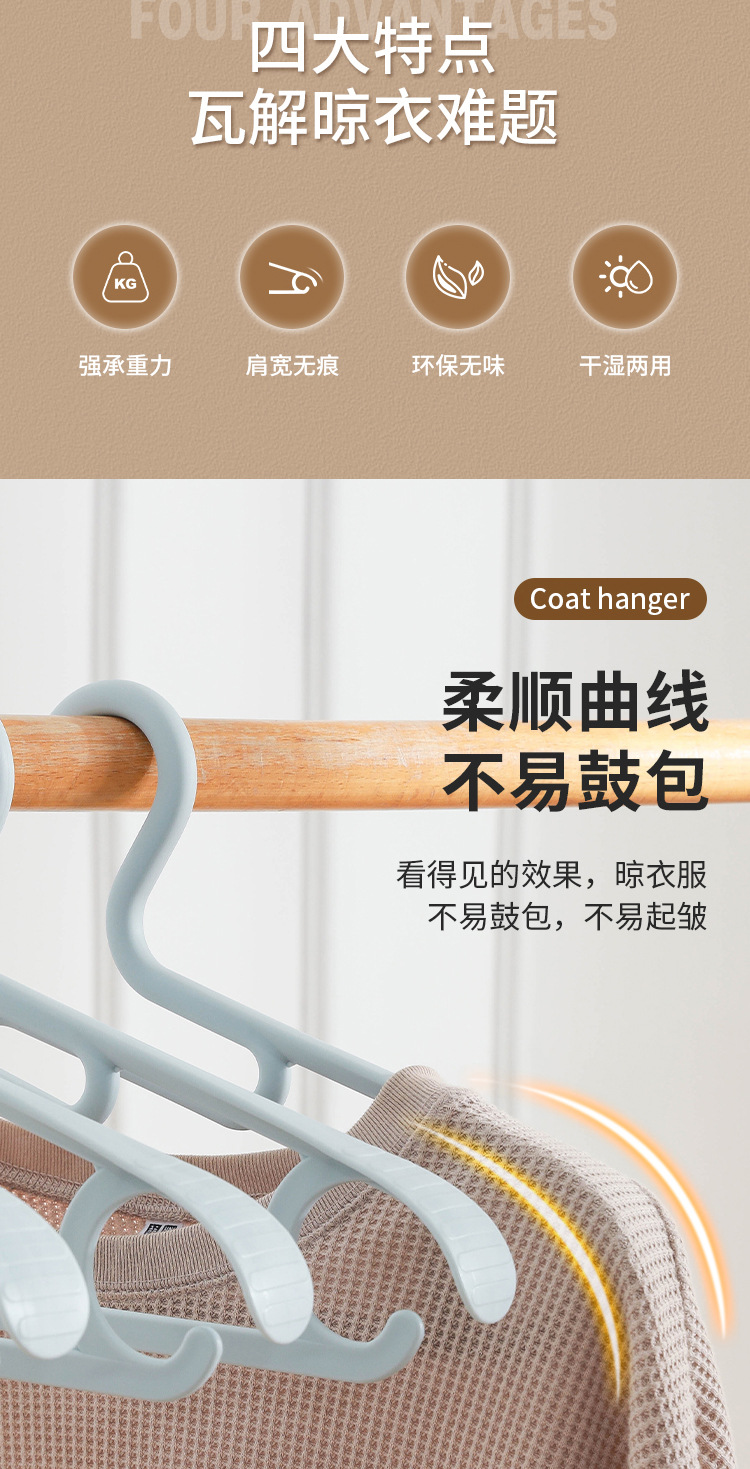 패셔너블한 넓은 어깨 미끄럼 방지 옷걸이, 가정용 플라스틱 옷걸이, 기숙사 학생용 옷걸이스토어 가기