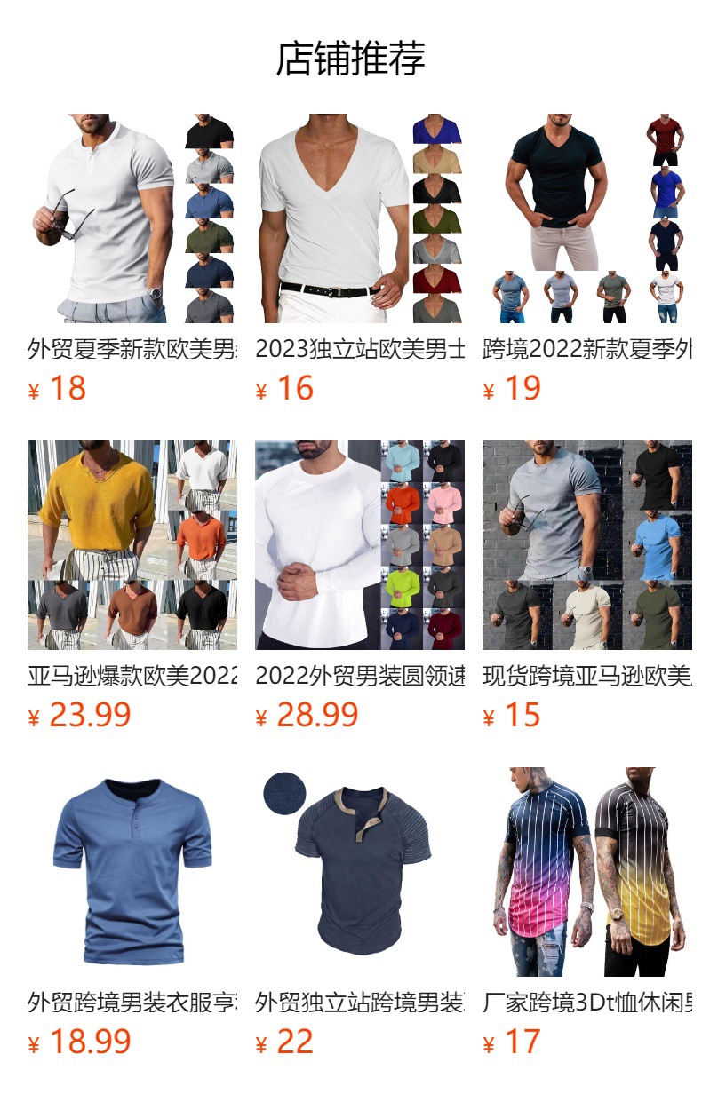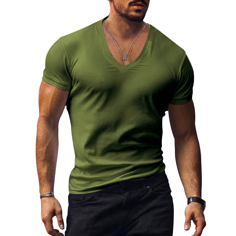 아마존 크로스 보더 남성용 티셔츠 유럽과 미국 여름 남성용 V-넥 단색 슬림 얇은 캐주얼 티셔츠 반팔 탑스토어 가기