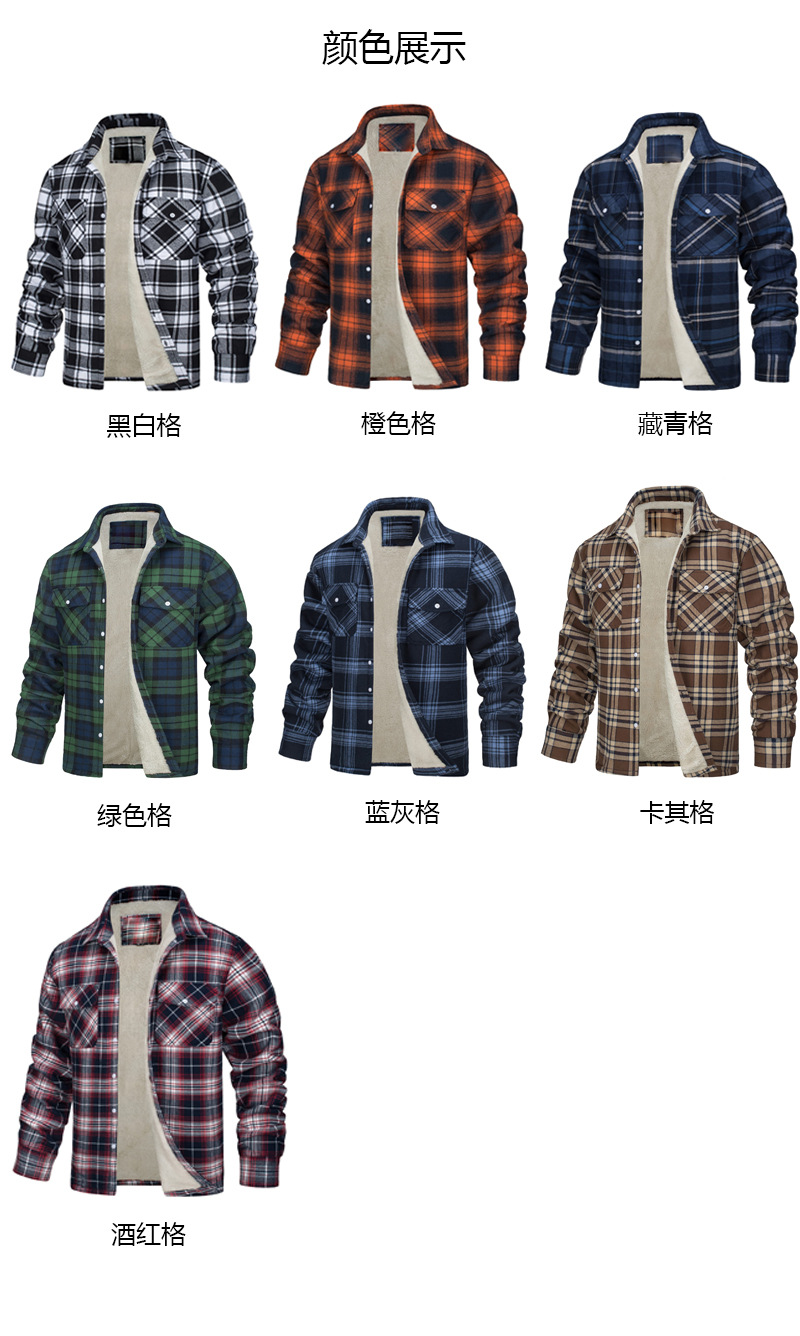 유럽과 미국 남성 자켓 2023 새로운 아마존 AliExpress 긴 소매 옷깃 격자 무늬 두꺼운 셔츠 남성 자켓스토어 가기