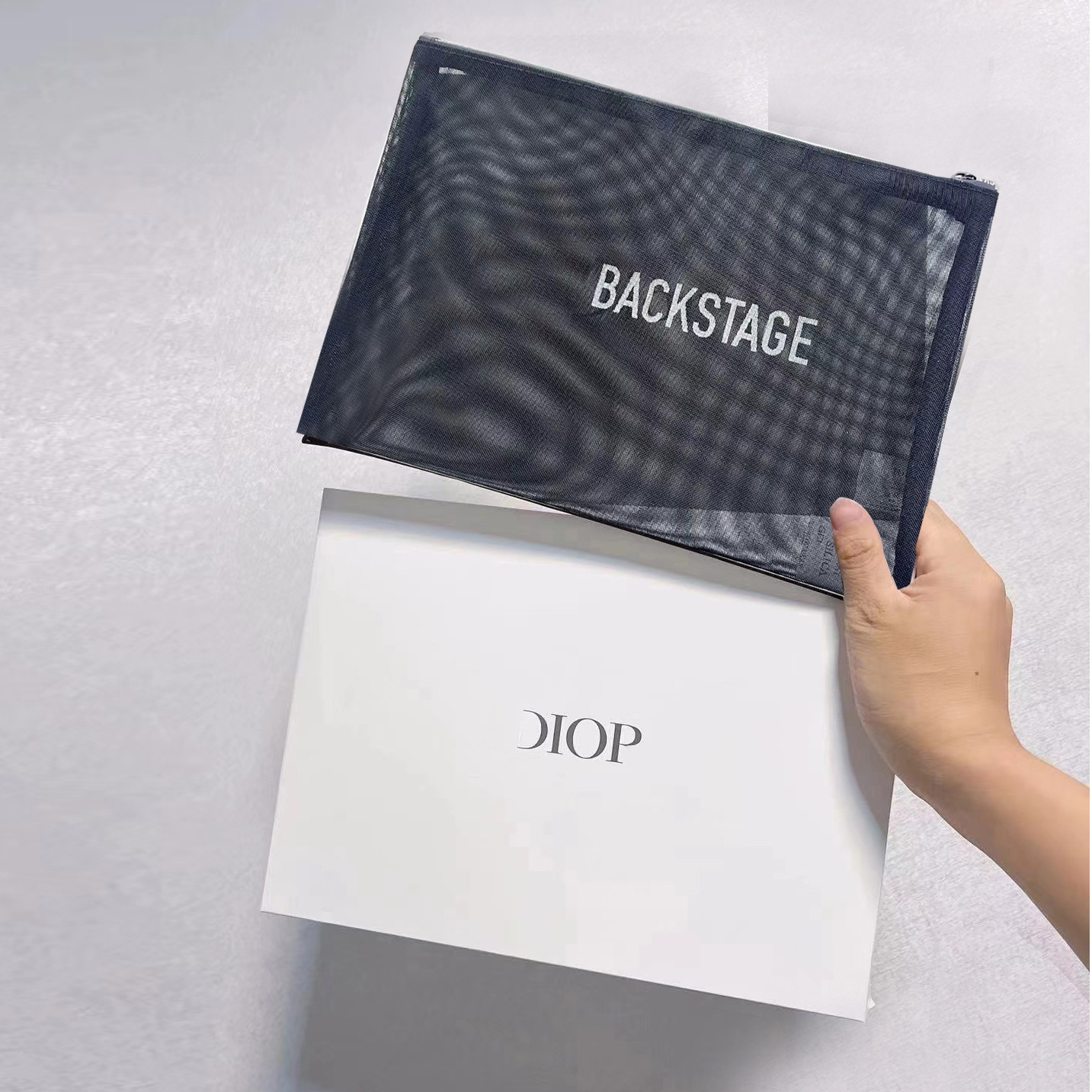 • 흰색 로고로 인쇄 된 검은 메쉬 가방 (선물 상자 포함)