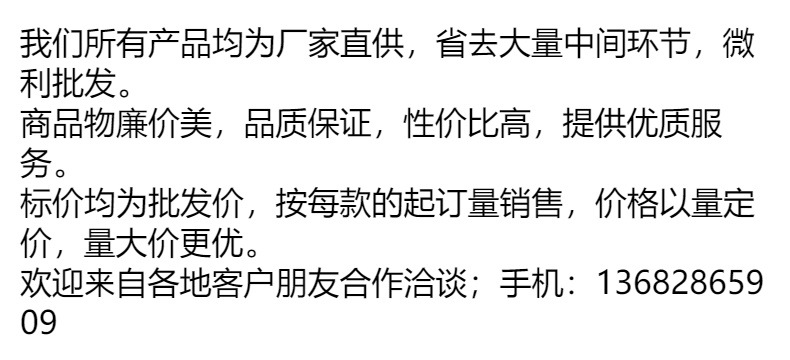 1688온라인 사이트에서 검색된 상품입니다. 알리타플에서는 상품검색/현지구매(구매대행)/국제배송 업무만 제공해드립니다. 해당 상품의 품질 및 상태에 대해서는 확인해 드릴 수 없고 해당 물건이 입고가 된 후에 검수과정을 거쳐야 확인이 가능합니다.