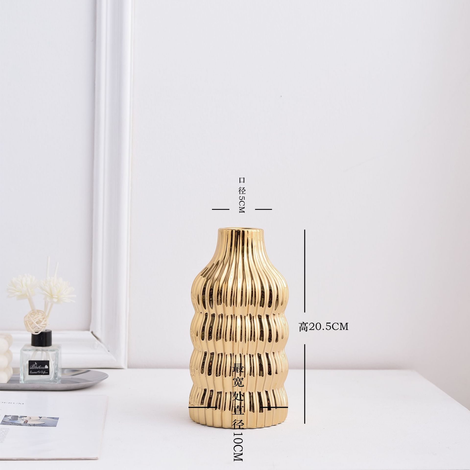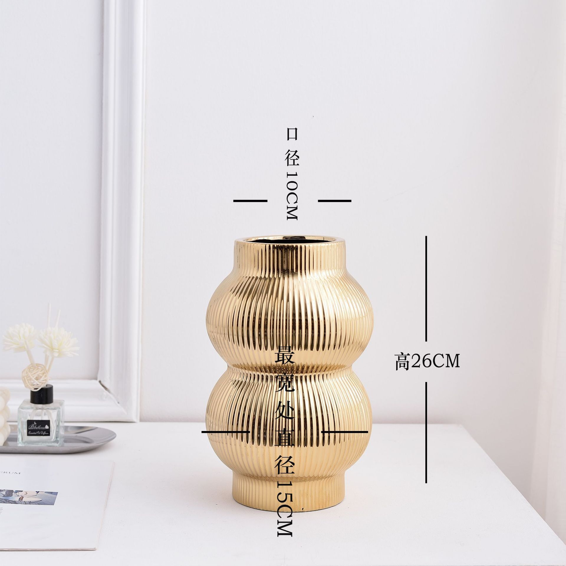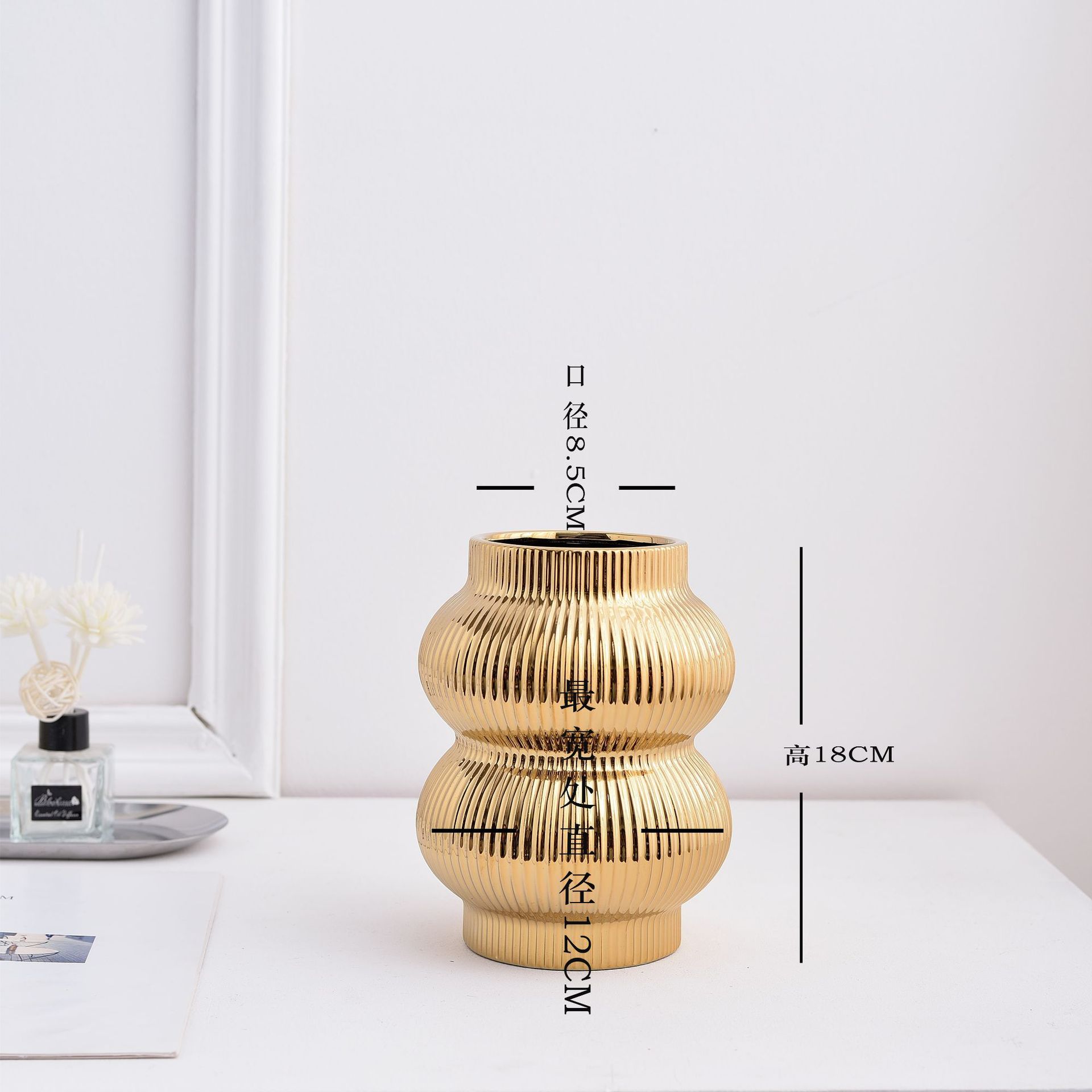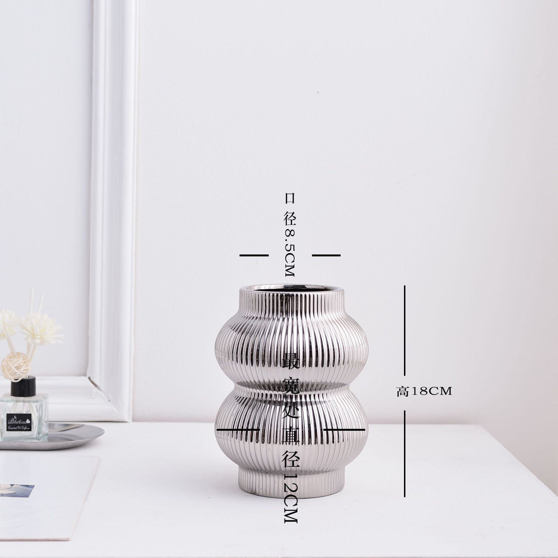 INS 라이트 럭셔리 골드와 실버 간단한 기하학적 추상 미술 세라믹 꽃병 꽃 홈 장식 장식품 작은 풀 밍