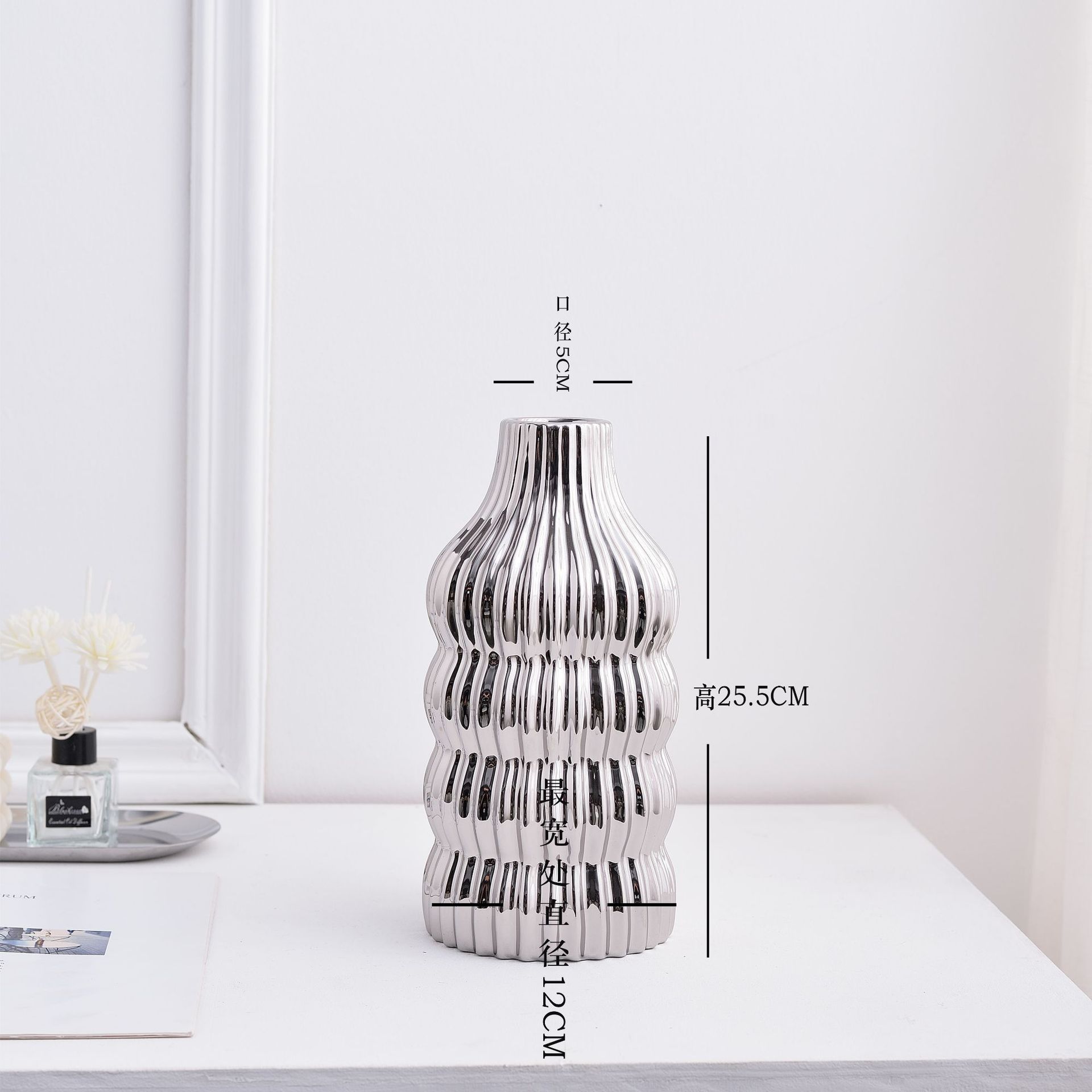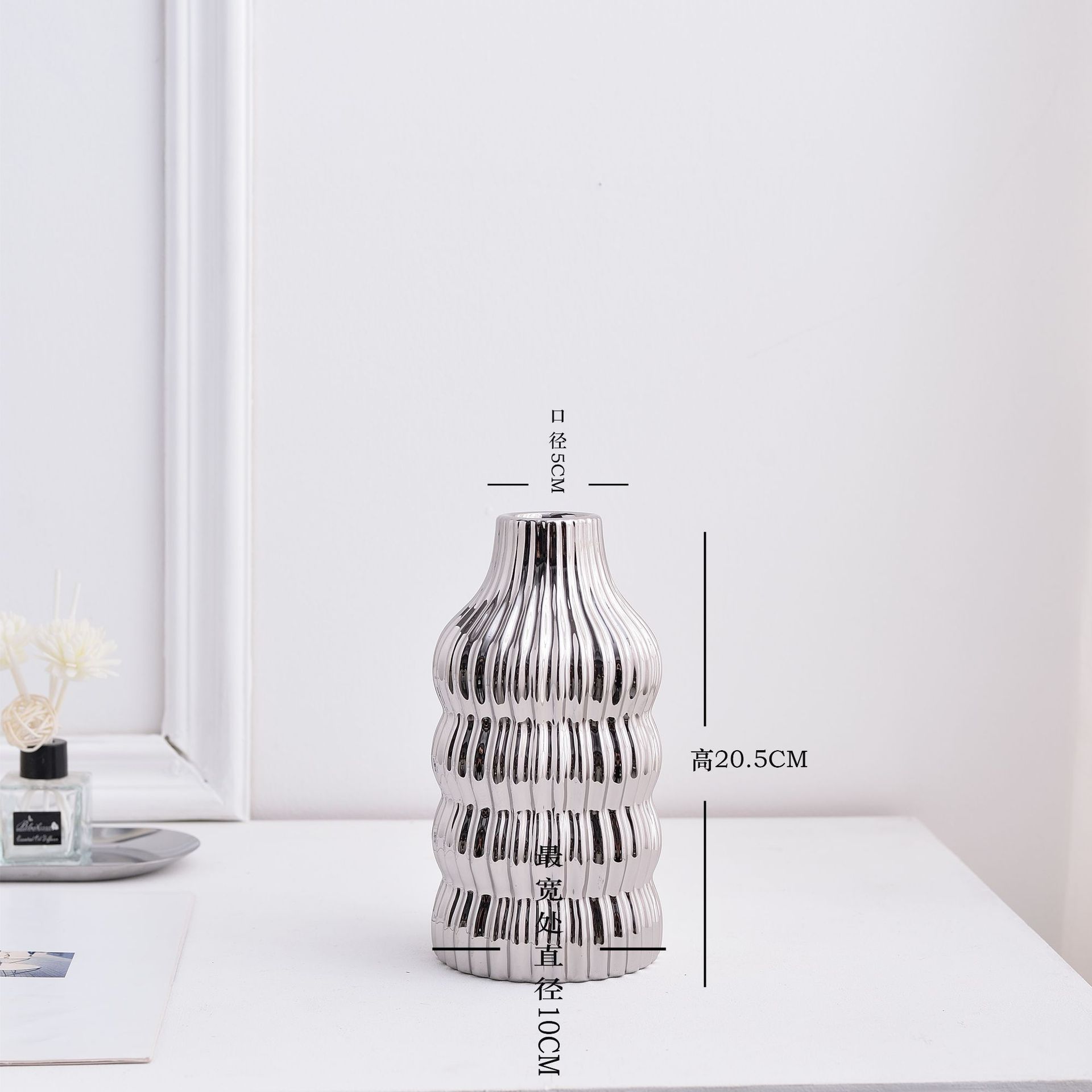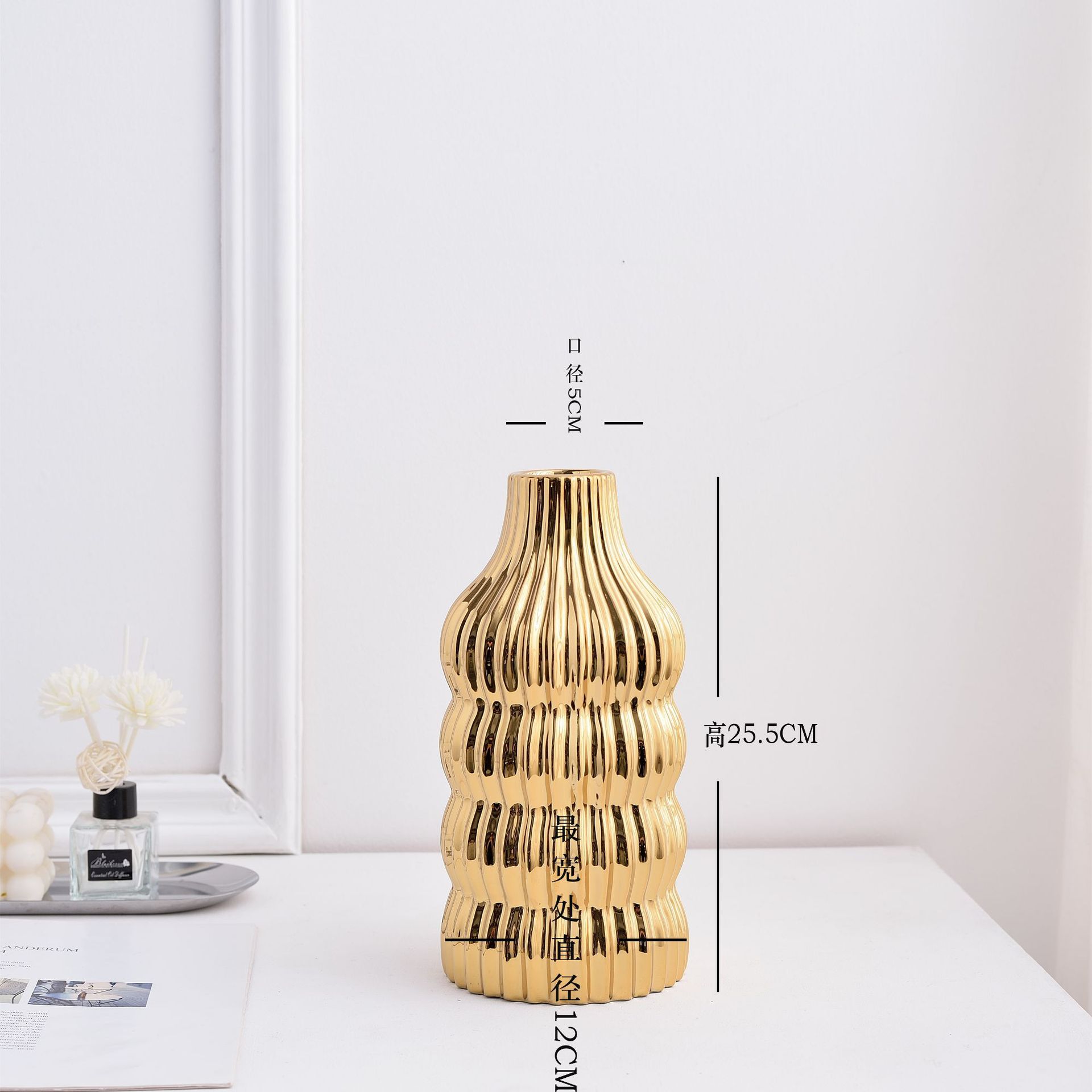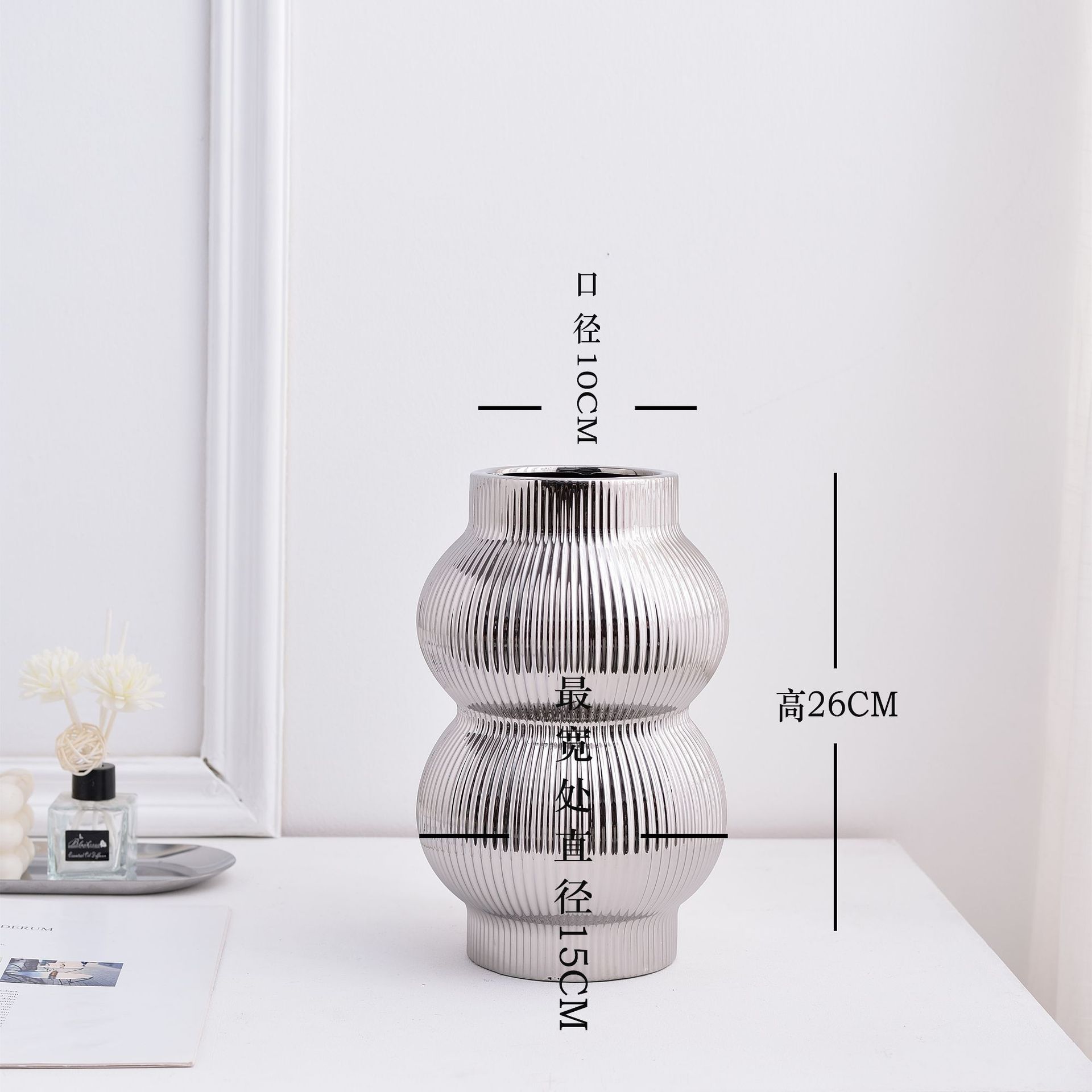 INS 라이트 럭셔리 골드와 실버 간단한 기하학적 추상 미술 세라믹 꽃병 꽃 홈 장식 장식품 작은 풀 밍
