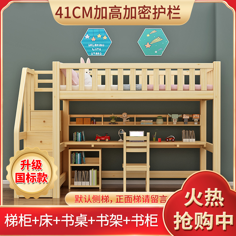 全实木儿童成人高低床上床下桌小户型多功能单上层高架床梯柜家用스토어 가기