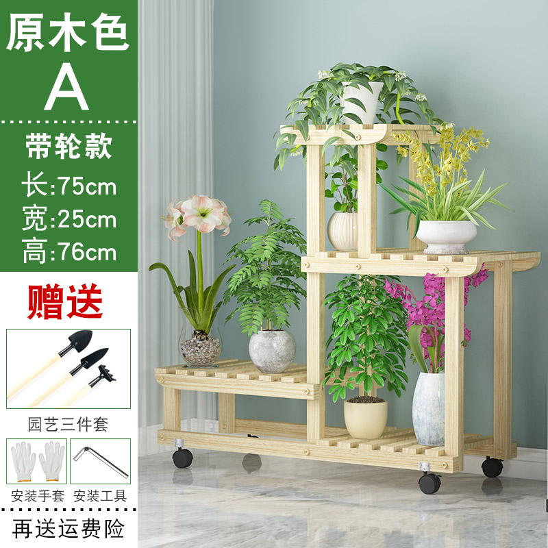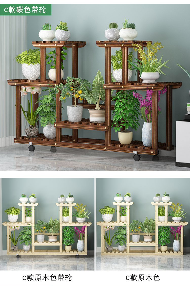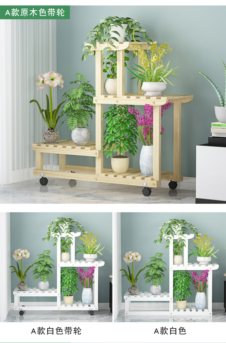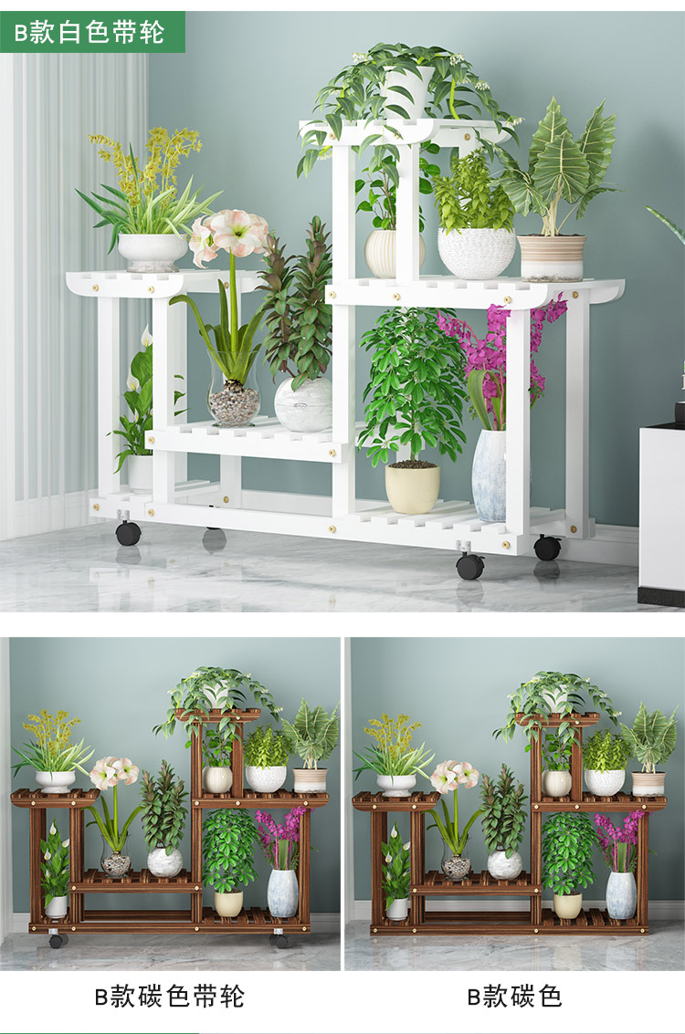 단단한 나무 꽃 선반 스토리지 랙 발코니 실내 꽃 랙 화분 랙 거실 바닥 서있는 다층 식물 선반 창턱스토어 가기