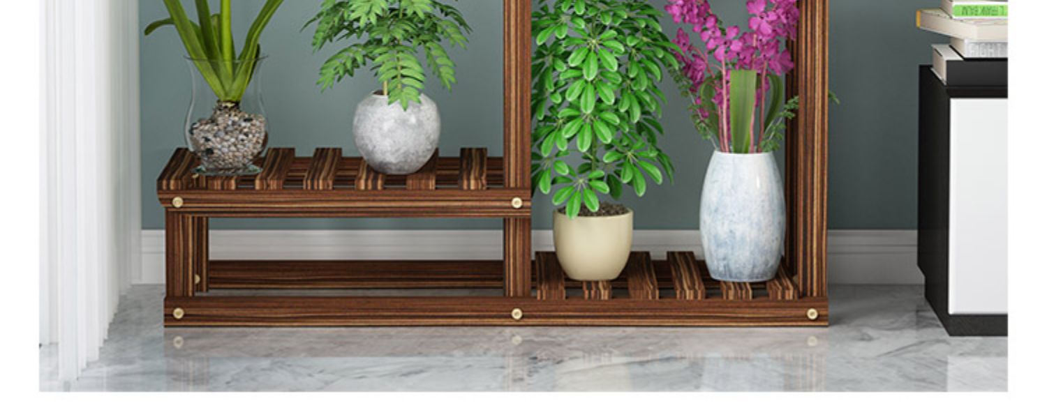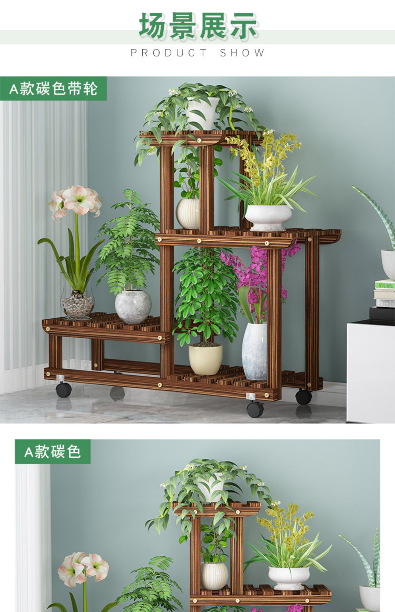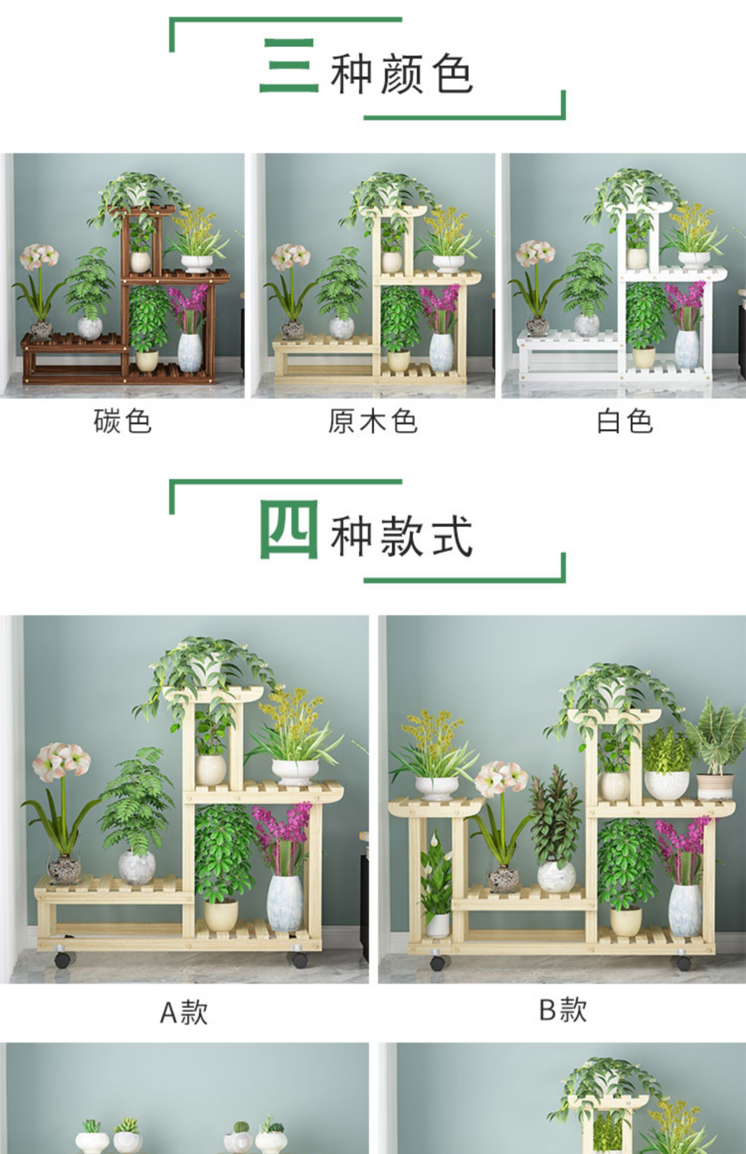 단단한 나무 꽃 선반 스토리지 랙 발코니 실내 꽃 랙 화분 랙 거실 바닥 서있는 다층 식물 선반 창턱스토어 가기