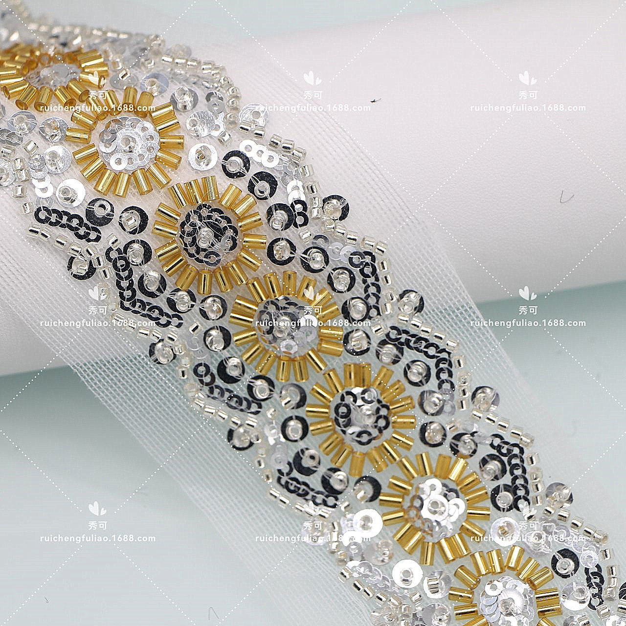 ◆所有特色漂亮花边都是出口大牌衣服的特别用料,每一批款式都不同而且数量有限。每一段都需要手工一针一线缝制,这些非常漂亮特别的钉珠花边都是纯手工制作,珠子和钻配合特别高档大方。花边拿在手份量十足。可用在衣服边、裙边、袖边、领口边等等。