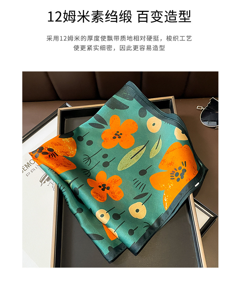 일본식 봄과 여름 목가적 스타일 꽃 뽕나무 실크 스카프 여성용 통근 작은 사각 스카프 목 보호 타이 백스토어 가기