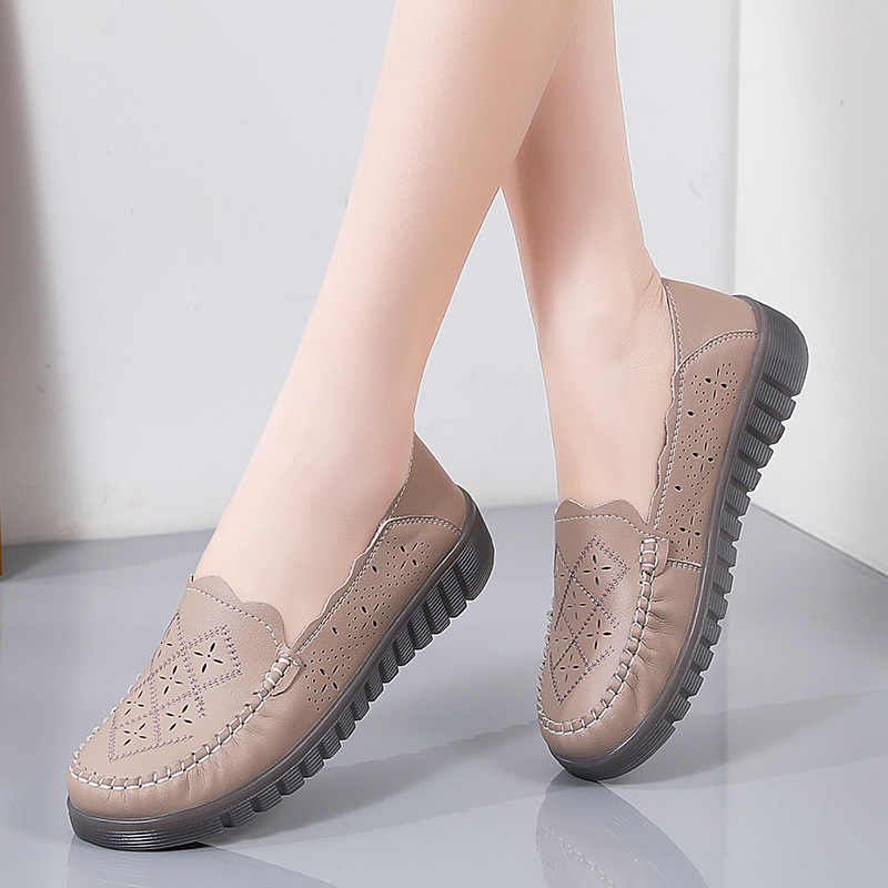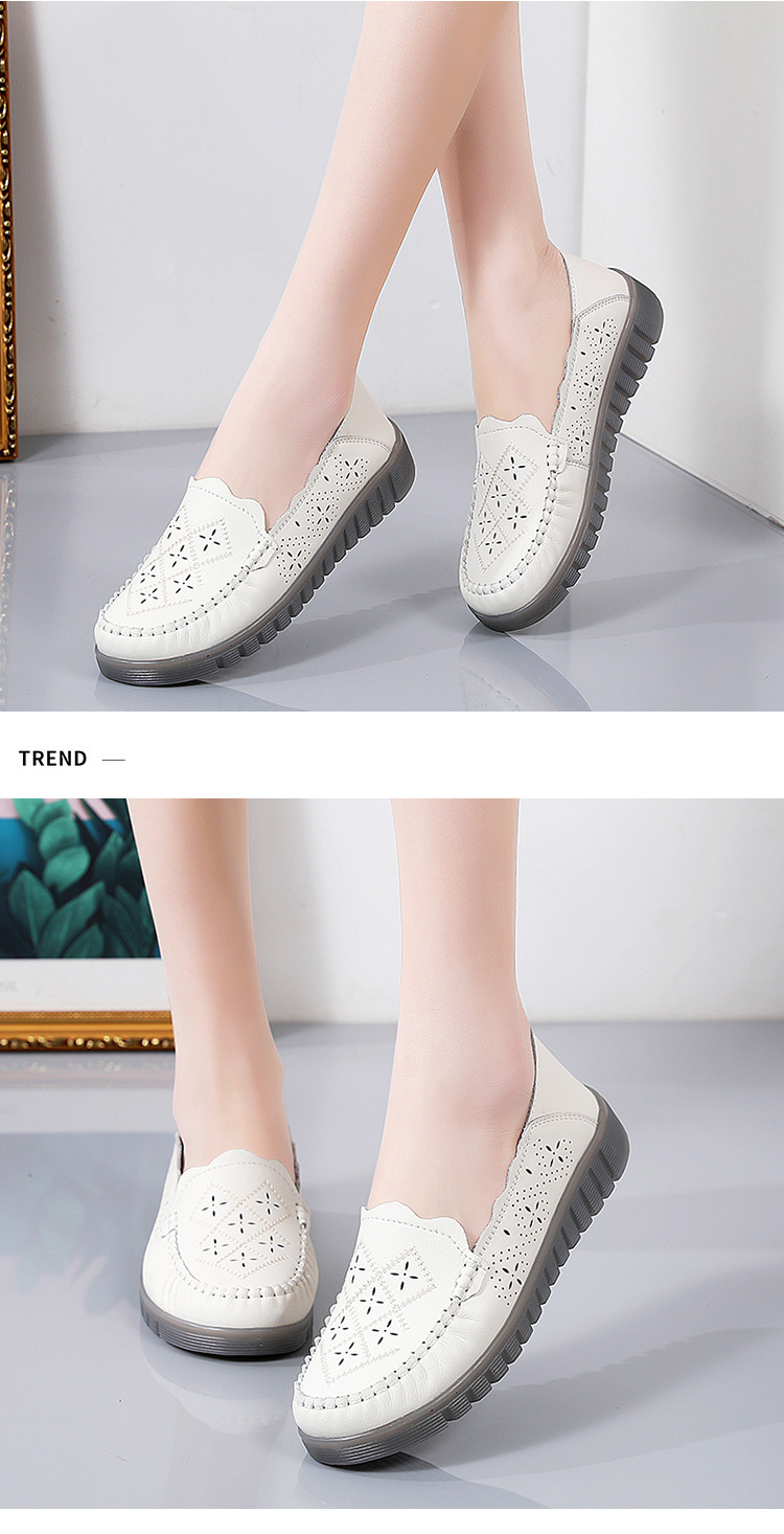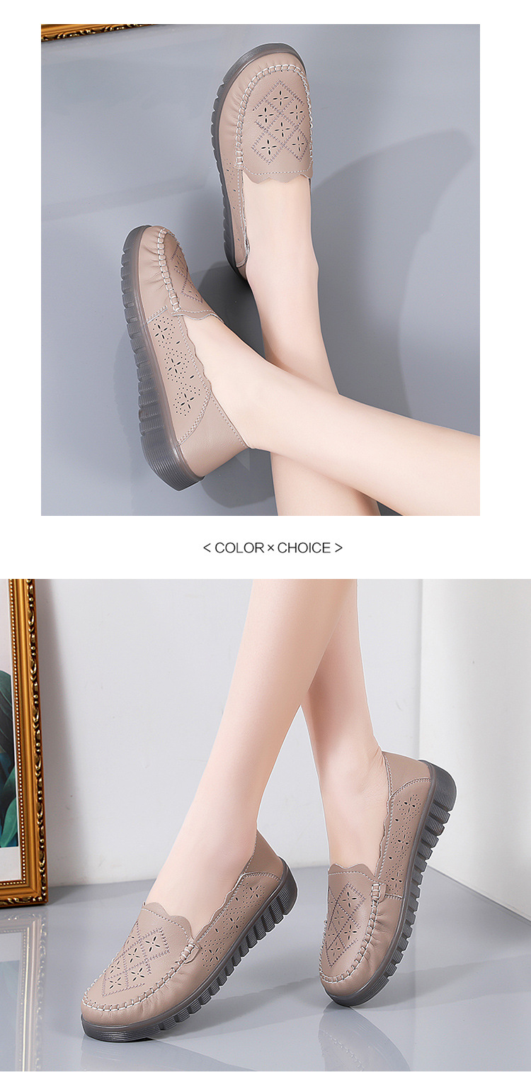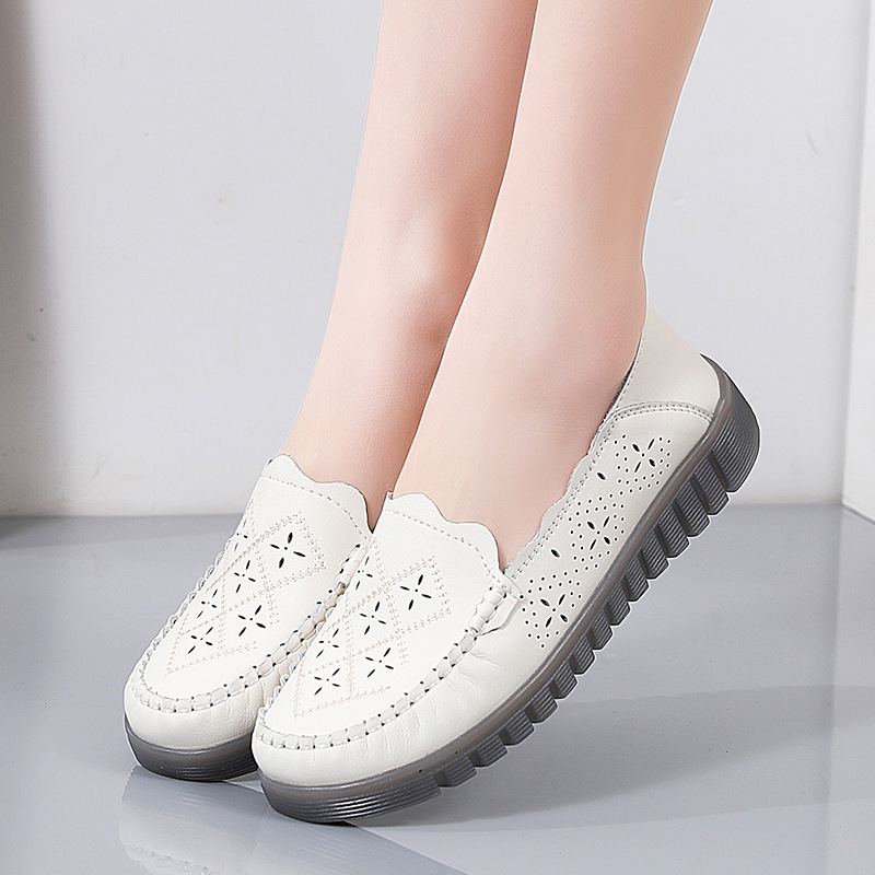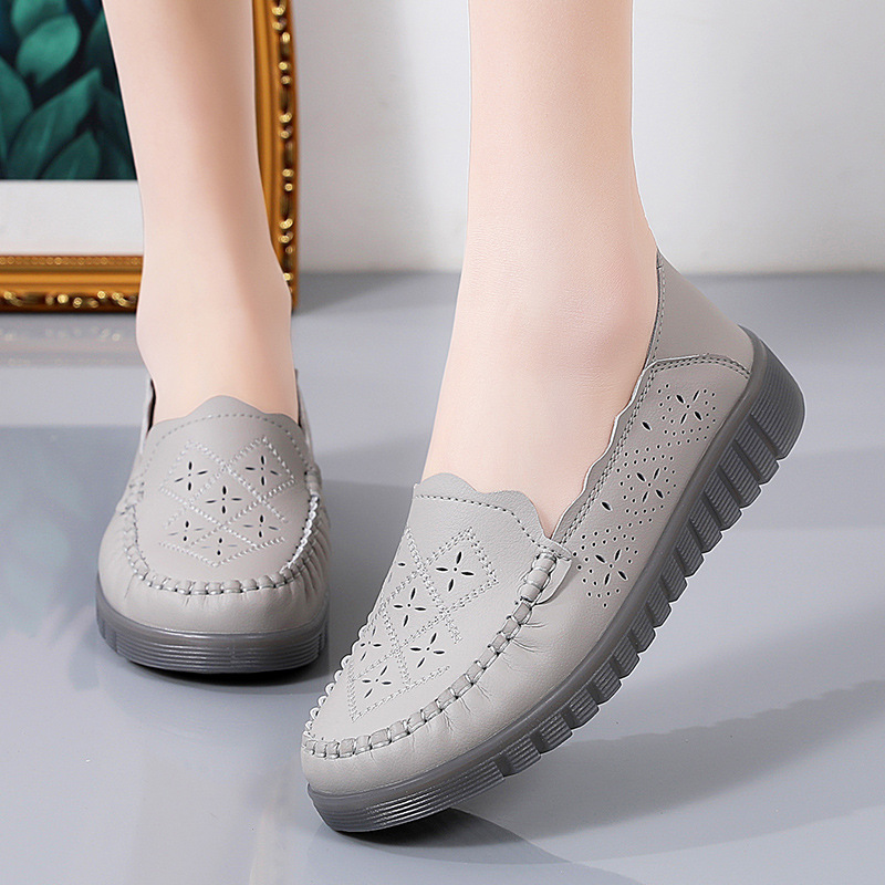 여름 새로운 중공 어머니 샌들 캐주얼 플랫 홀 신발 여성용 쇠고기 단독 통기성 여성 신발 중년 및 노인