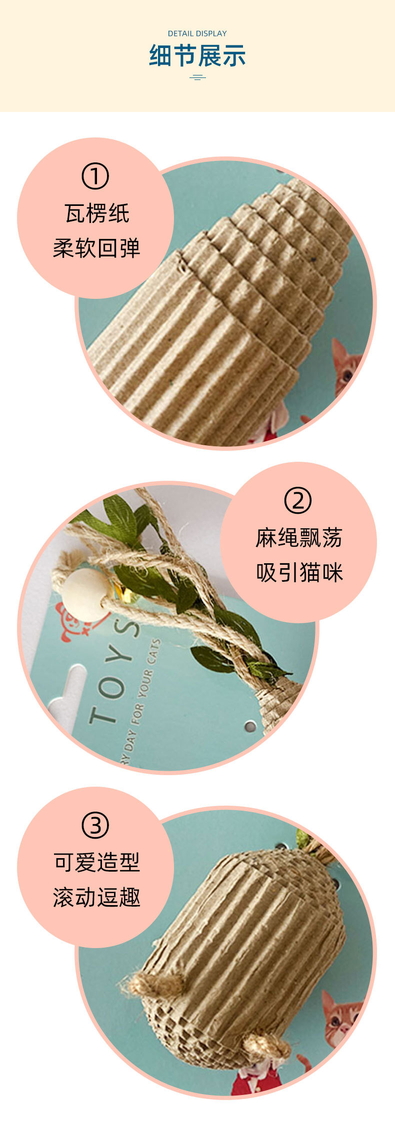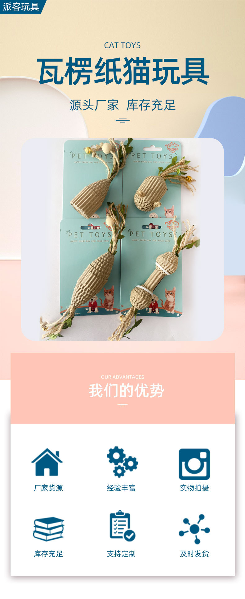 골판지 시리즈 고양이 장난감 안녕하세요 지루함을 완화하기 위해 재미있는 고양이 장난감 물기 저항 연삭 발톱 어금니 애완 동물 용품 제조 업체 도매스토어 가기