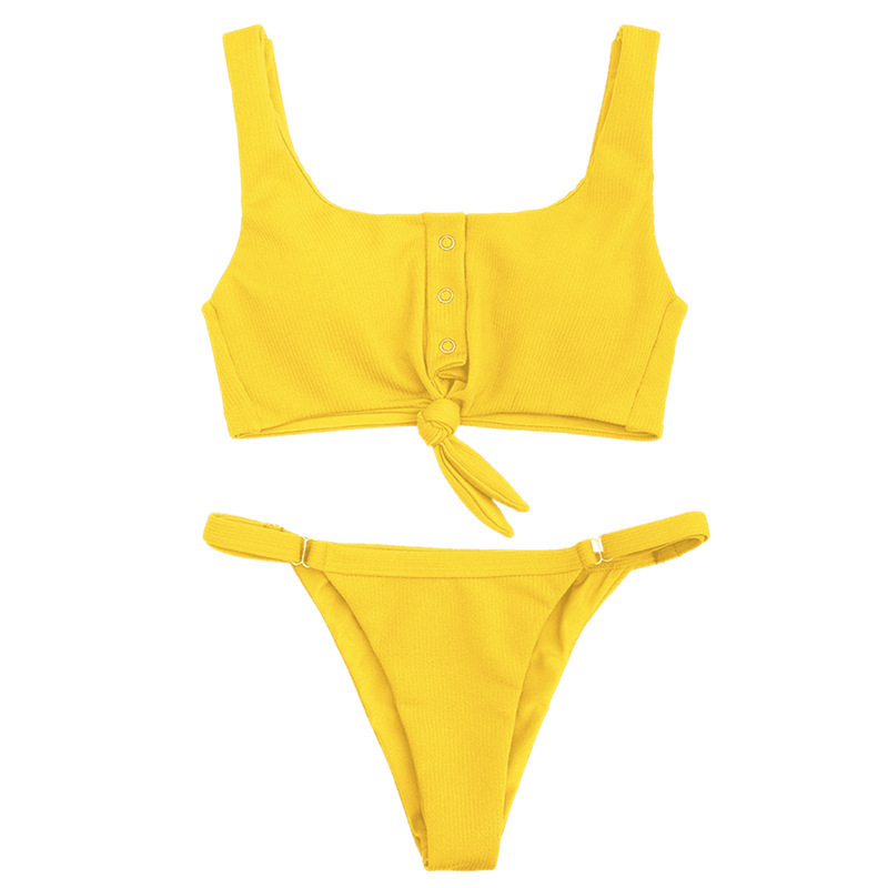 유럽과 미국 새로운 크로스 보더 솔리드 컬러 비키니 수영복 패션 섹시 스플릿 비키니 유럽과 미국 수영복