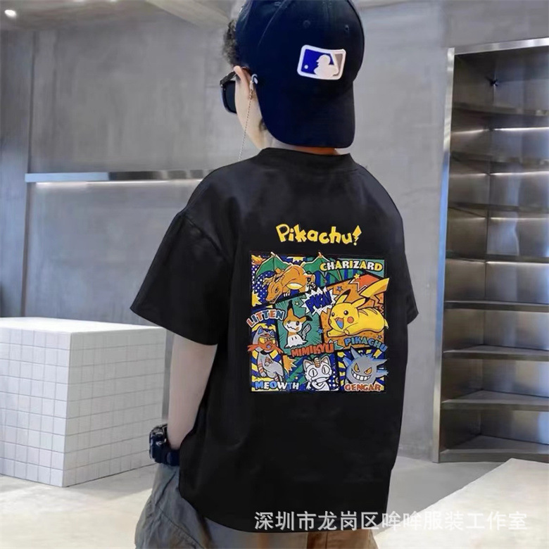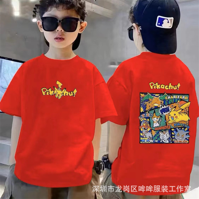 여름 어린이 순면 자이언트 소프트 반팔 티셔츠 트렌디한 새로운 Bicachu 어린이를위한 귀여운 프린트 반팔 탑스토어 가기