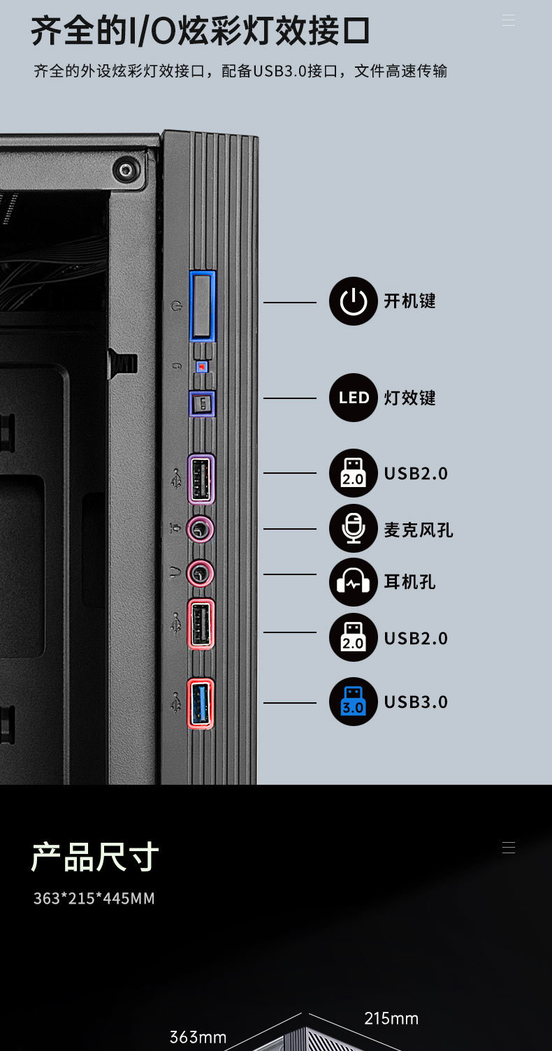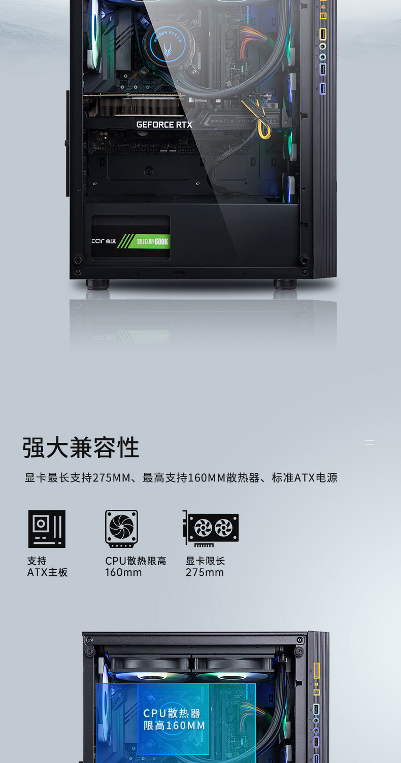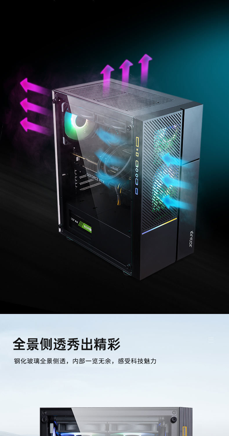 국경 간 데스크탑 컴퓨터 PC 호스트 쉘 RGB 다채로운 파노라마 강화 유리 측면 투명 ATX 수냉식 게임 케이스
