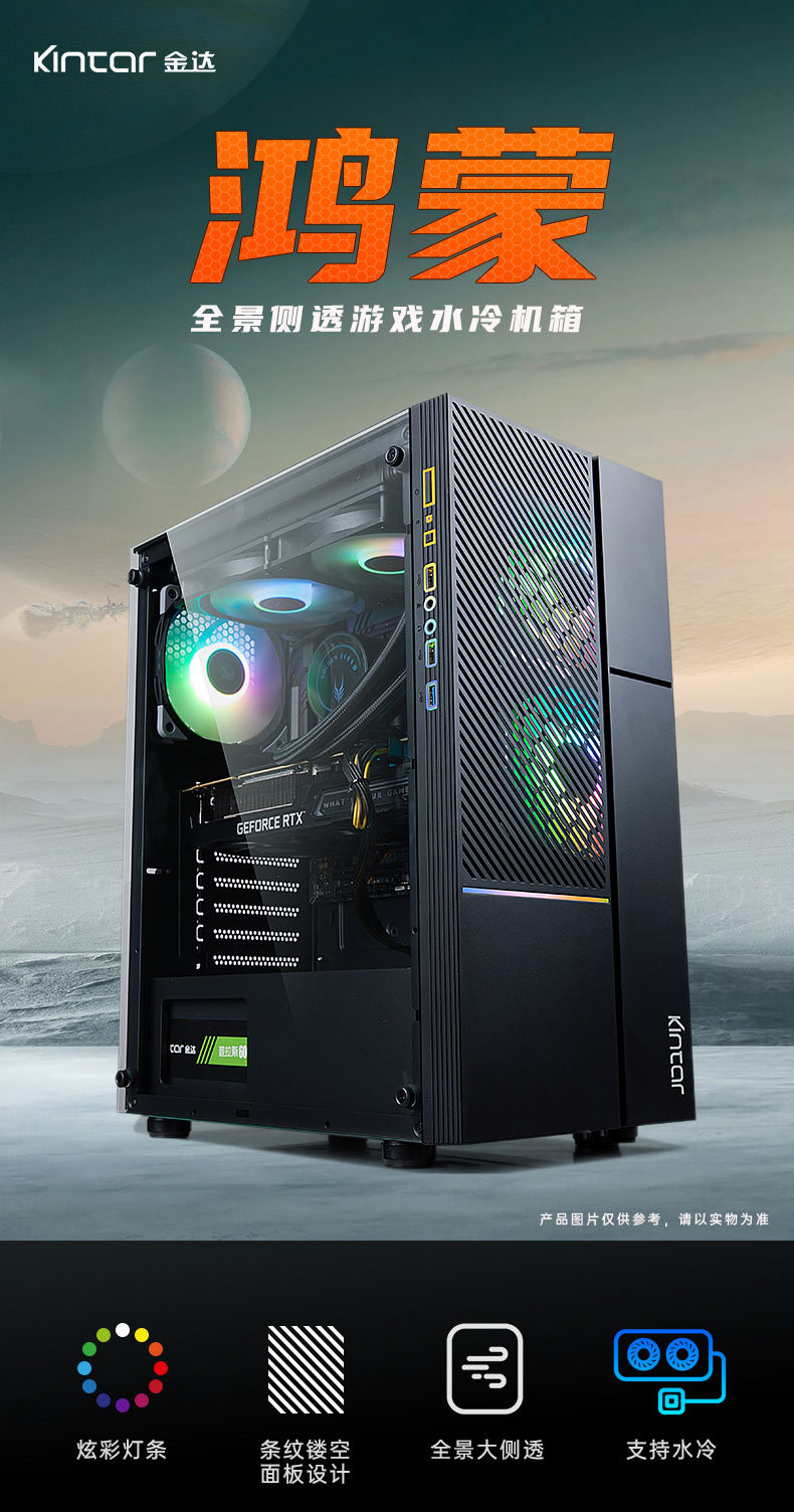 국경 간 데스크탑 컴퓨터 PC 호스트 쉘 RGB 다채로운 파노라마 강화 유리 측면 투명 ATX 수냉식 게임 케이스스토어 가기