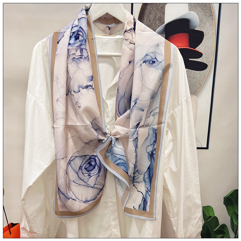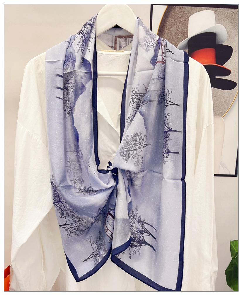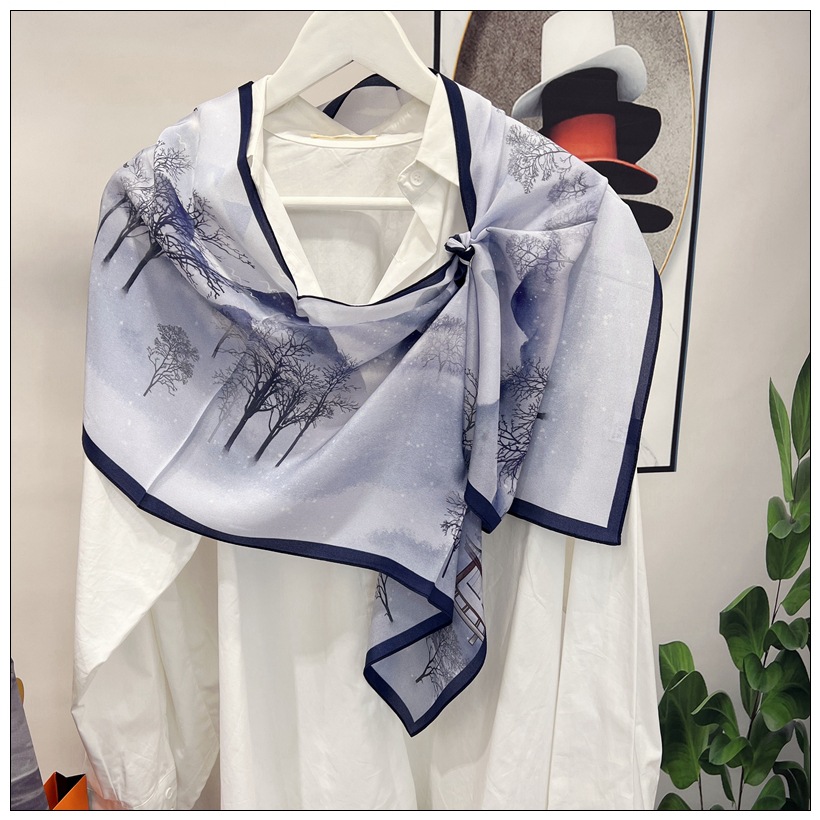 항저우 실크 뽕나무 실크 스카프 일반 우아한 잉크 대나무 그림 실크 스카프 여성용 크레페 드 신 스카프 숄