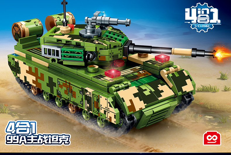 Senbao 1300-03 4 대 1 99A 메인 배틀 탱크 모델 소년 조립 어린이 퍼즐 빌딩 블록 군용 장난감스토어 가기